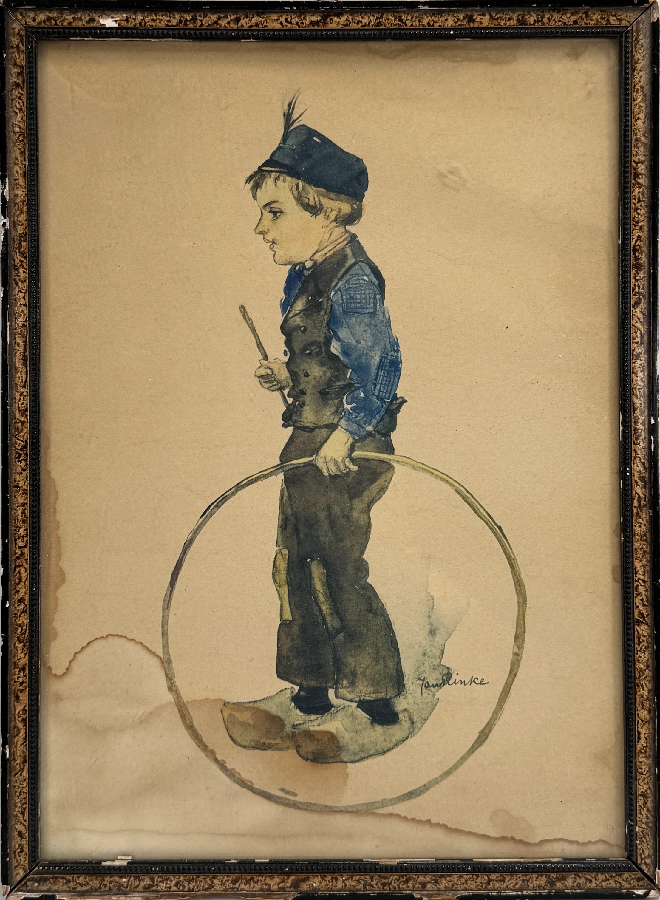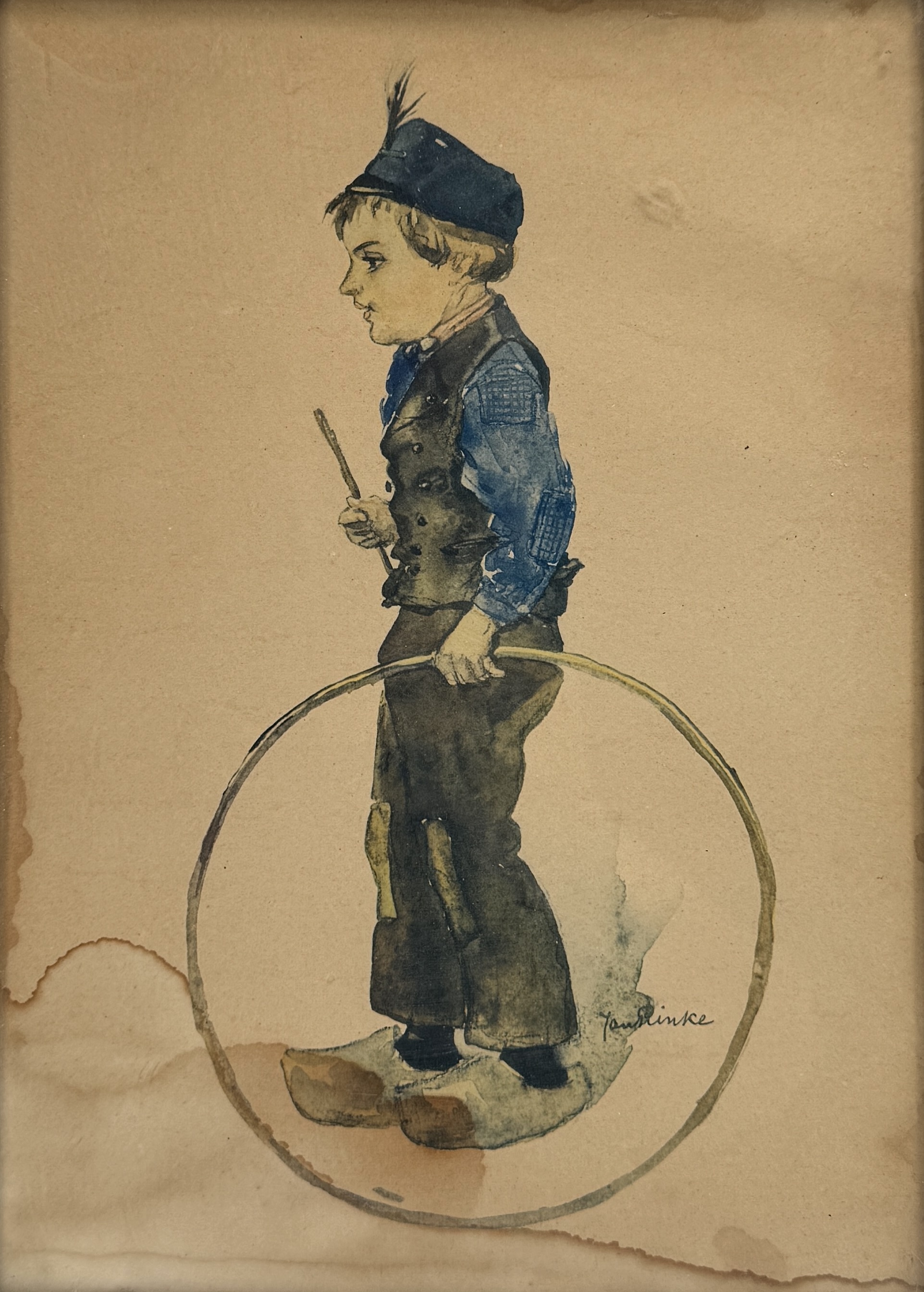 Aquarel Jan Rinke, kind met hoepel, ca. 1900