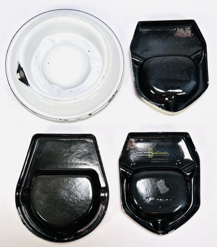 Emaille reclame-asbakken, midden 20e eeuw, Nederland