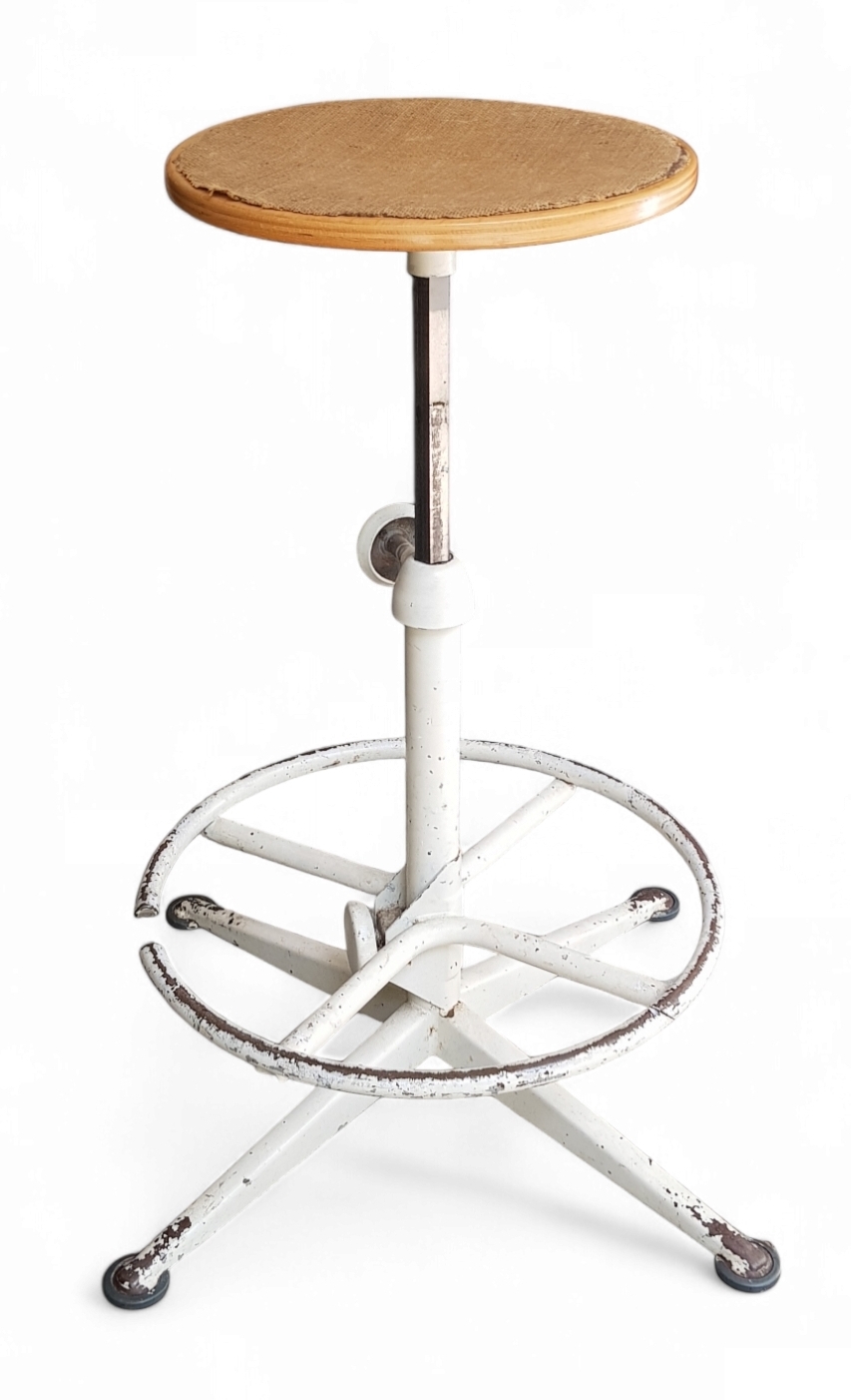 Atelier kruk met houten zitting, midden 20e eeuw
