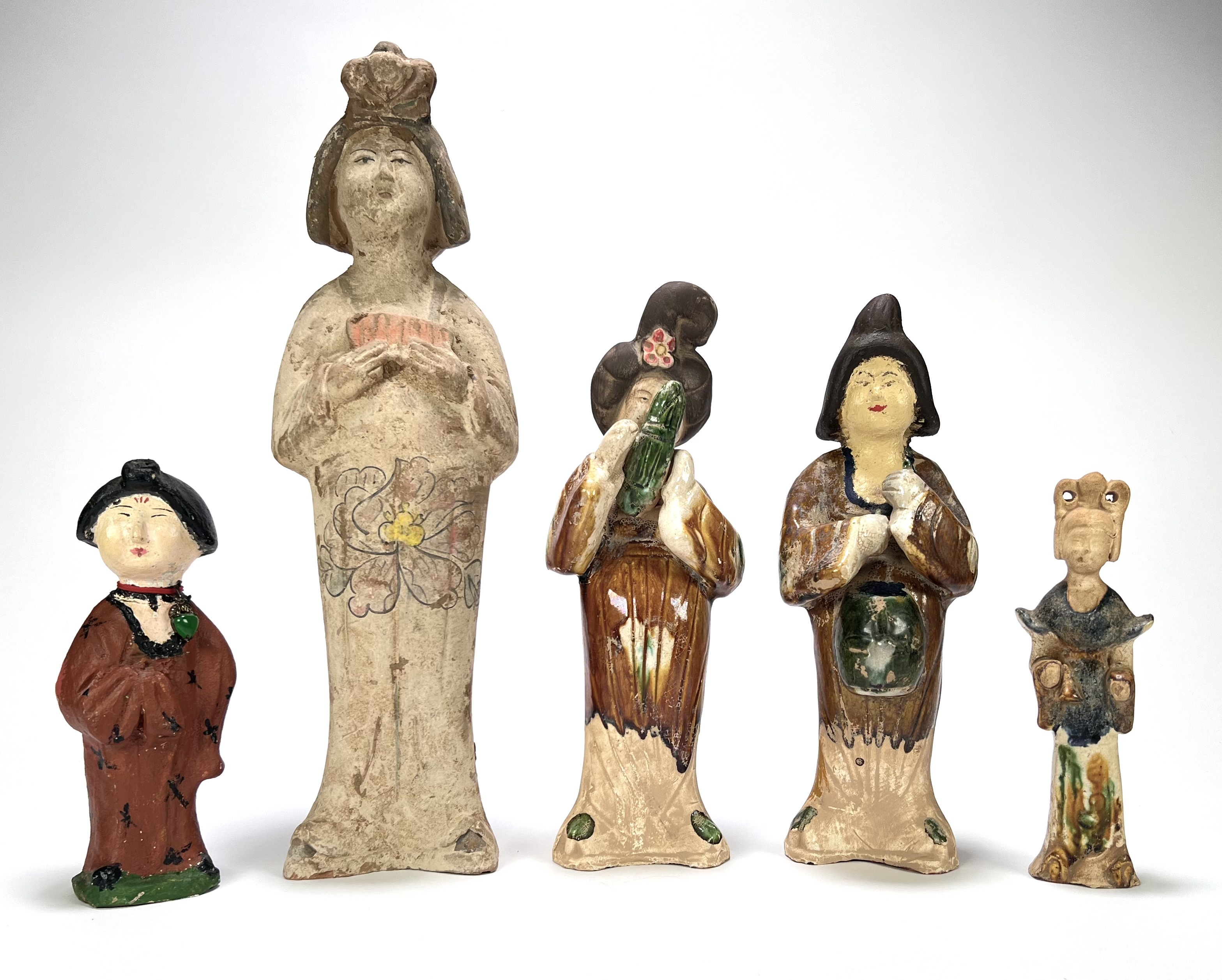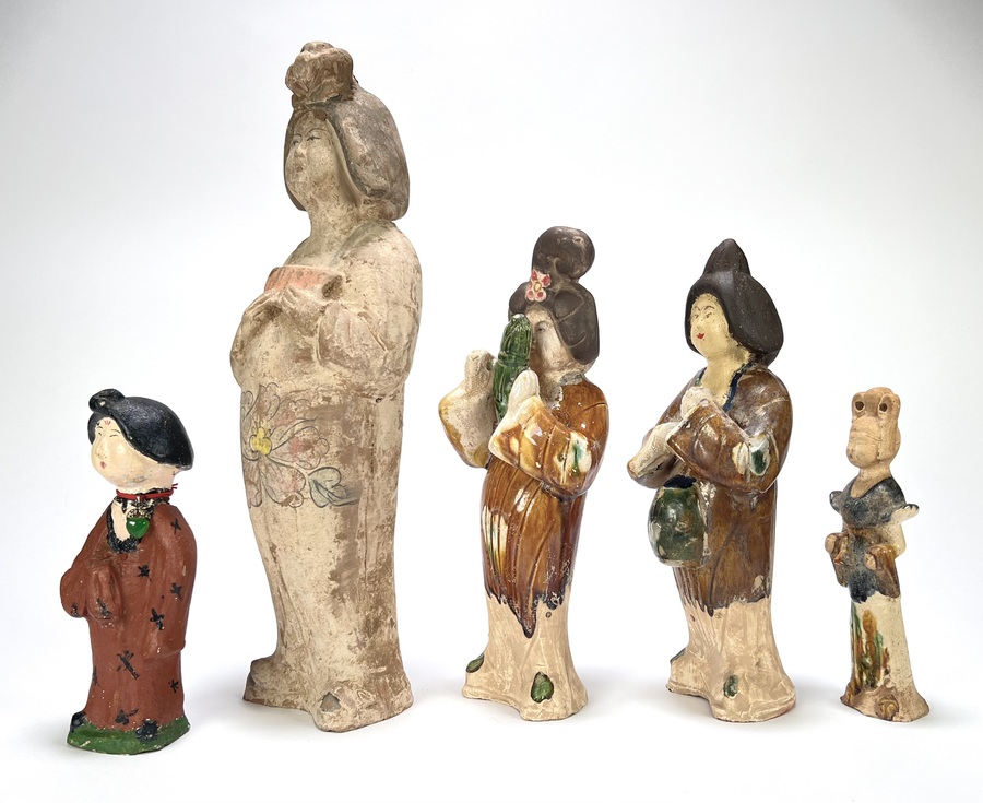 Aardewerk beeldjes met sancai glazuur, ca. 1950–1970, China