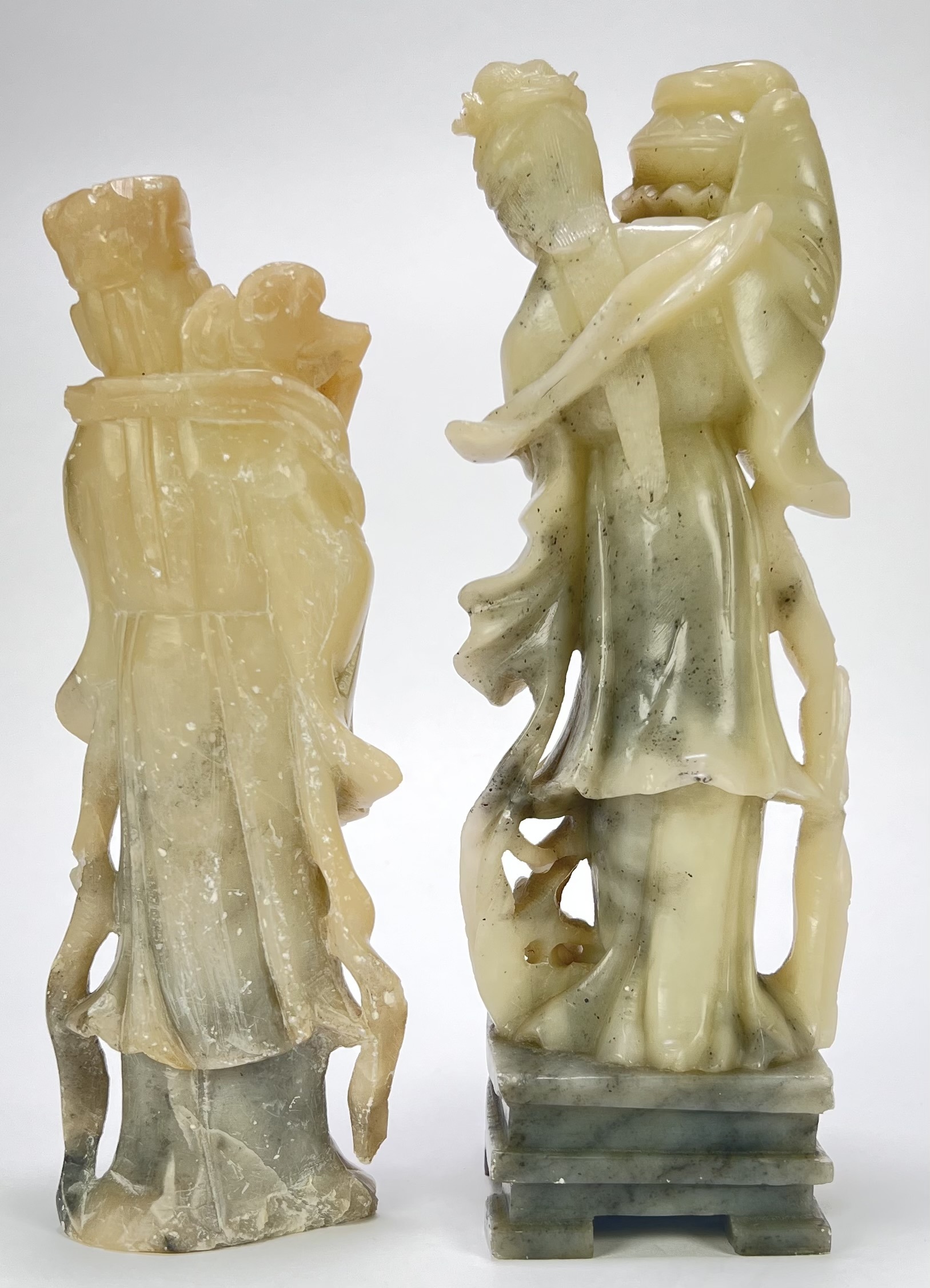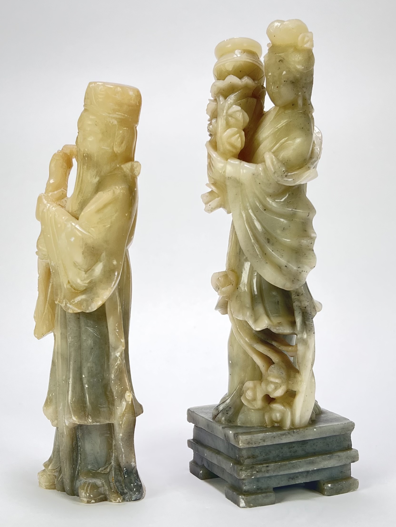 Spekstenen beelden met bloemen en ruyi, ca. 1950–1970, China