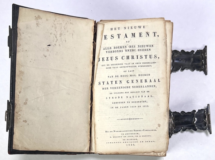 Leren bijbel met zilveren sluiting, Statenvertaling, 1858