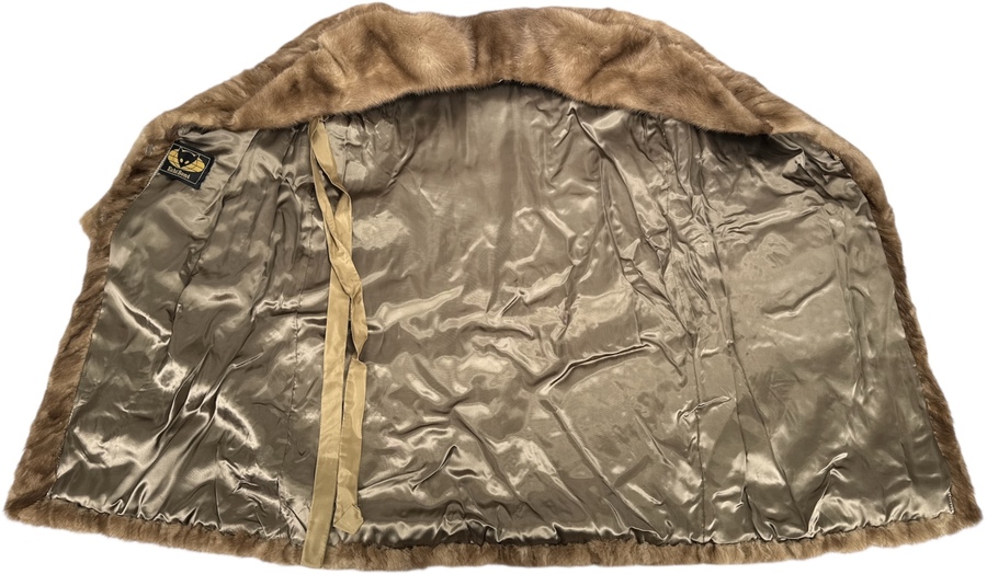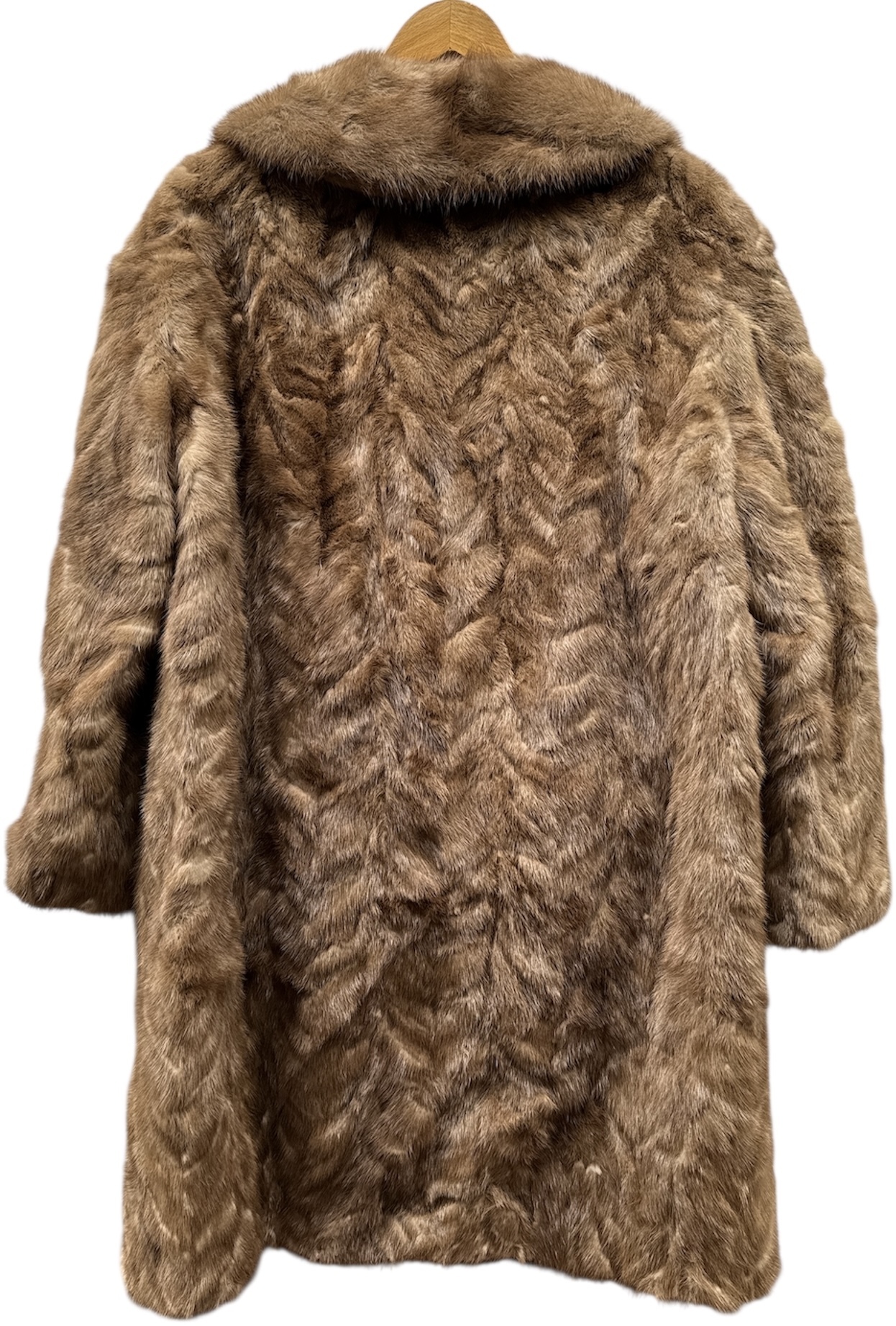 Vintage bontjas, omstreeks midden 20e eeuw, uitgevoerd in nerts bont met chevronpatroon. De jas heeft een klassieke halflange snit, brede reverskraag en satijnachtige voering. Klaar om te bieden? Registreer je nu en doe mee aan de veiling! |