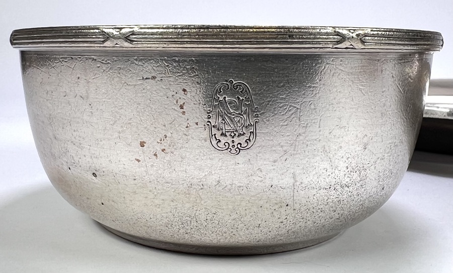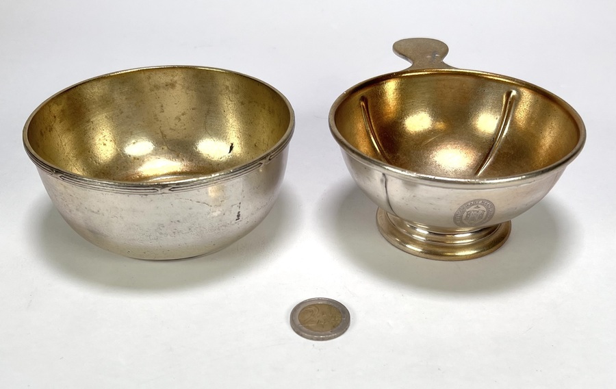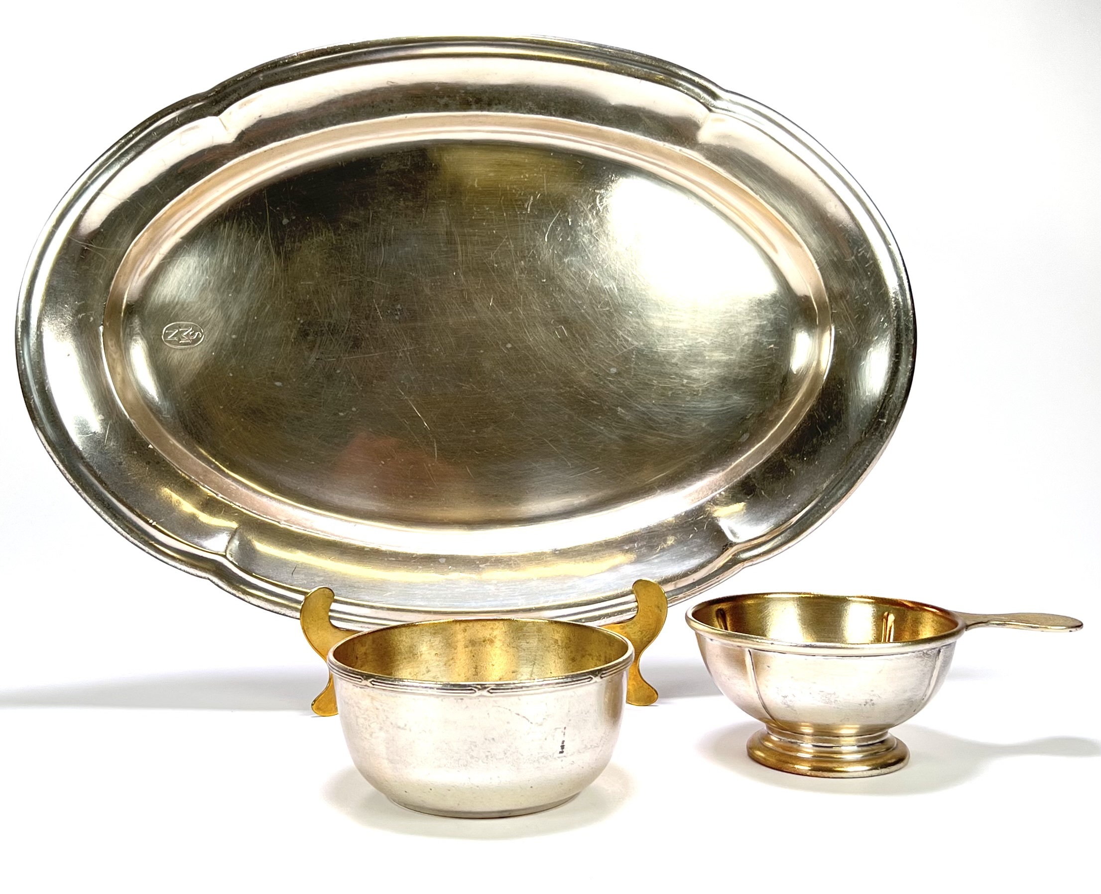 Verzilverd ensemble bestaande uit een ovaal dienblad, een vingerkommetje en een ijscoupe met korte greep, gemerkt SMN (Stoomvaart Maatschappij Nederland) aan de onderzijde. Uitgevoerd in functionele stijl en daterend uit circa midden 20e eeuw. Vervaardigd in verzilverd metaal met toegepaste pers- en drijfwerktechniek. Kenmerkend zijn de eenvoudige vormen, geprofileerde randafwerking en gladde oppervlakken, typerend voor gebruik in representatieve tafelcultuur. Zeker zijn van deelname? Plaats vanaf 22 augustus een schriftelijk bod online! |