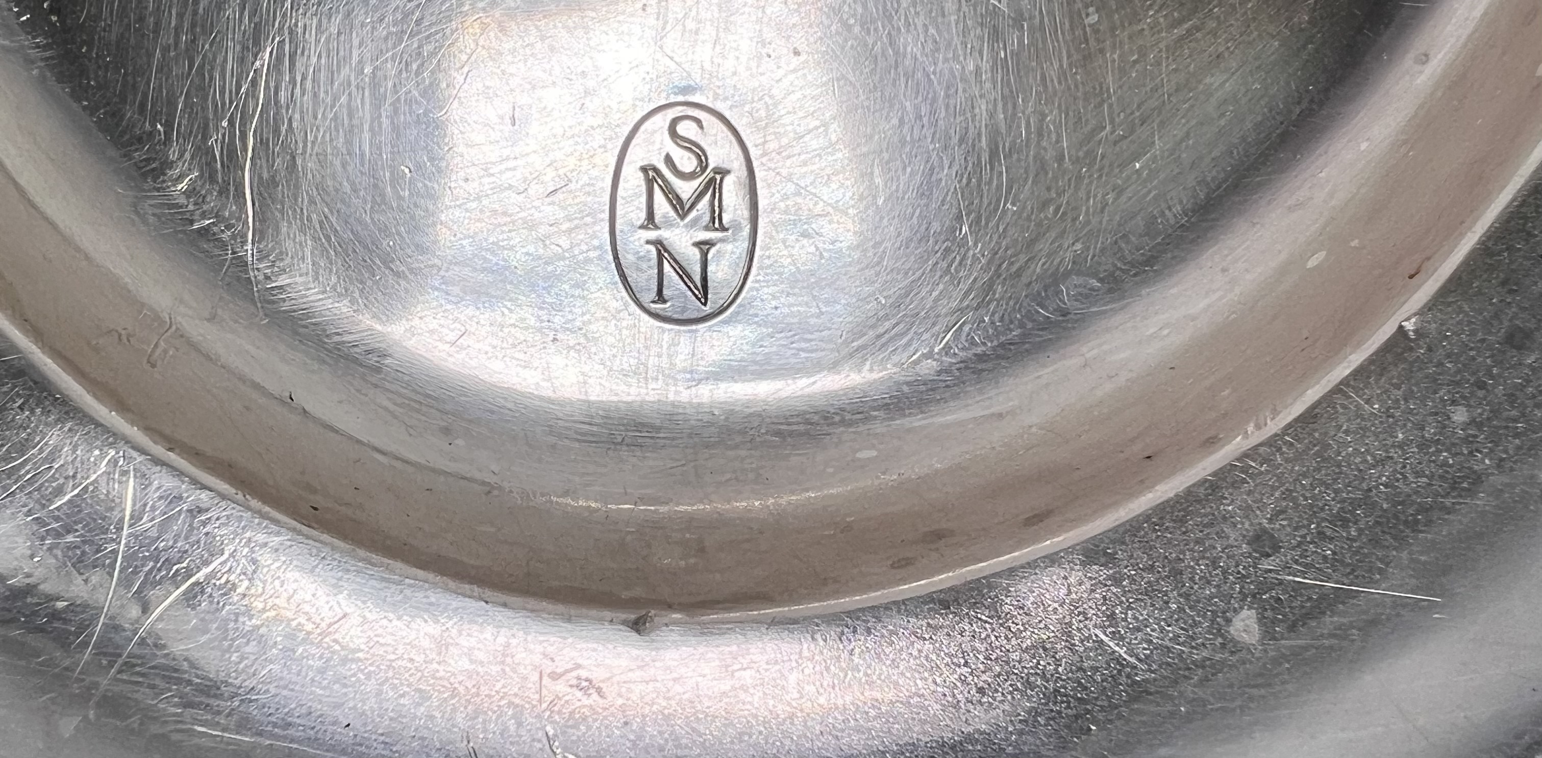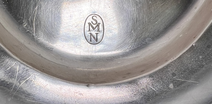 | Kavelnummer en naam | 1376. Verzilverd dienblad, vingerkommetje en ijscoupe, Stoomvaart Maatschappij Nederland, midden 20e eeuw | |