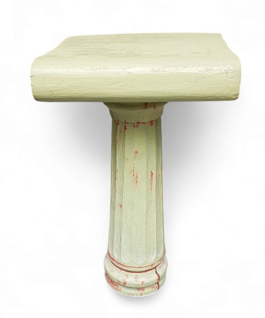 Deze Dorische zuil van hout, daterend omstreeks het midden van de 20e eeuw, heeft een gecanneleerde schacht en een kapiteel met voluten. Het object is beschilderd met een lichtgroene verf met rode accenten, die deels is afgebladderd, los bovenblad. De stijl is een latere interpretatie van de klassieke Dorische zuil. Zeker zijn van deelname? Plaats vanaf 22 augustus een schriftelijk bod online! |