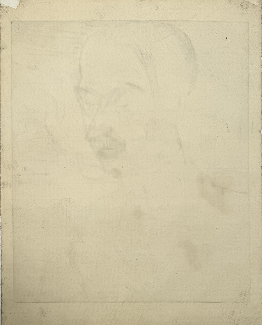 Modernistische ets met lineaire, schetsmatige contouren van een man met snor, geportretteerde is Jan Altink (1885–1971) van De Ploeg, eerste helft twintigste eeuw. Ets op papier met watermerk, gedrukt vanaf een koperplaat. Zichtbare plaatrand en ruim marginaal papier. Atelierachtergrond met gestileerde objecten en rookpluim, neutrale monochrome toon met variatie in arceringen en kraslijnen. Nederlandse herkomst, portretformaat, toegeschreven aan Jan Wiegers. Geïnteresseerd? Bezoek onze kijkdagen op 29, 30 of 31 augustus van 11:00 tot 17:00 uur! |