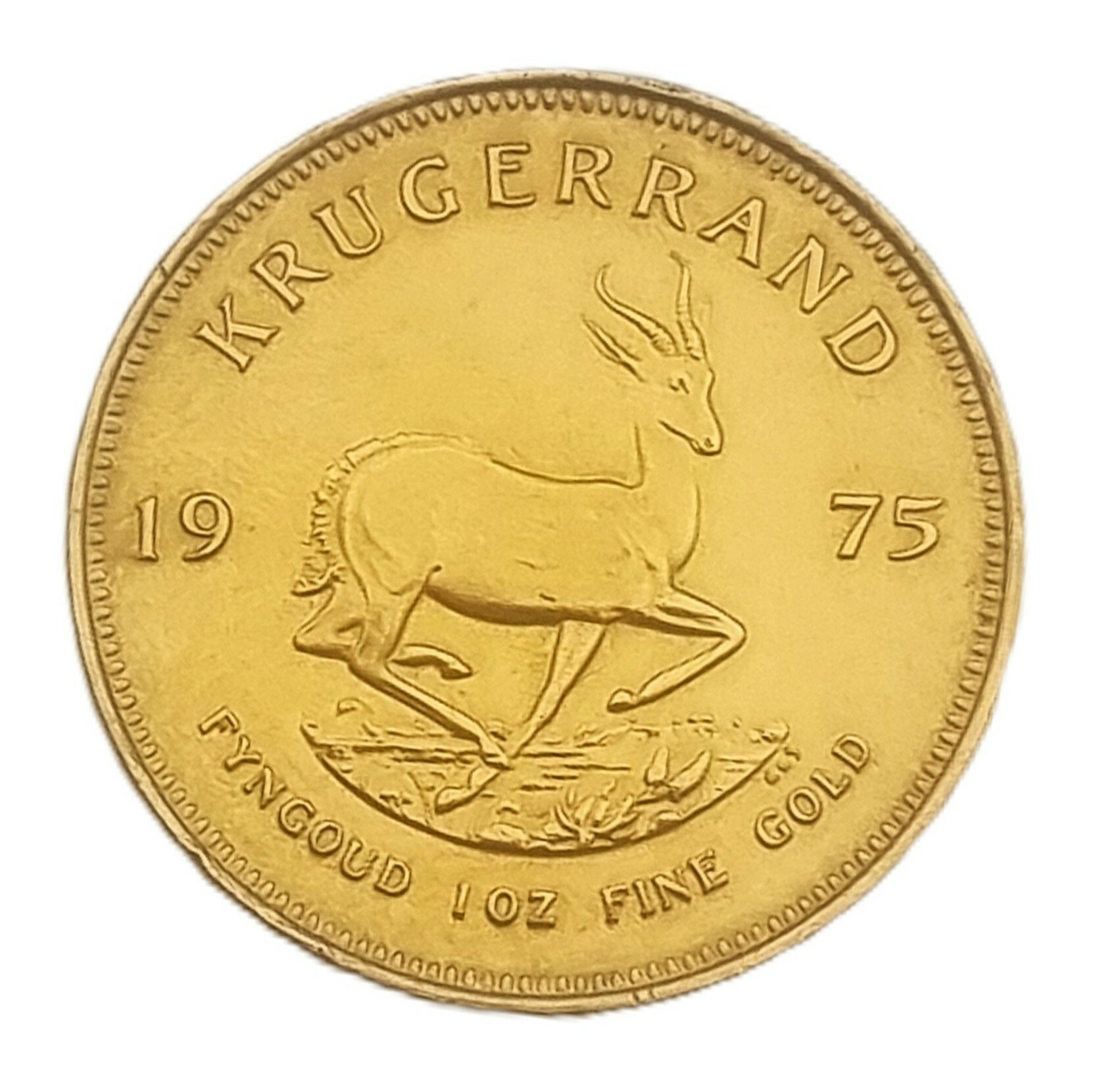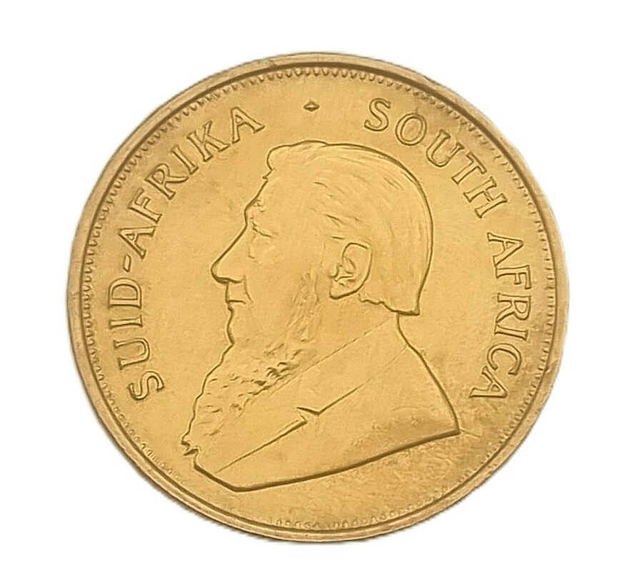 Gouden Krugerrand van 1 troy ounce fijn goud, geslagen door de South African Mint in het jaar 1975. Voorzijde met portret van Paul Kruger en tekst “SUID-AFRIKA – SOUTH AFRICA”, keerzijde met springbok en goudspecificatie. Uitgevoerd in 22 karaat goud (91,67%). De munt combineert verzamelwaarde met intrinsieke waarde als beleggingsobject. Deze Krugerrand zelf beoordelen? Je bent welkom op onze kijkdagen op 29, 30 en 31 augustus! |