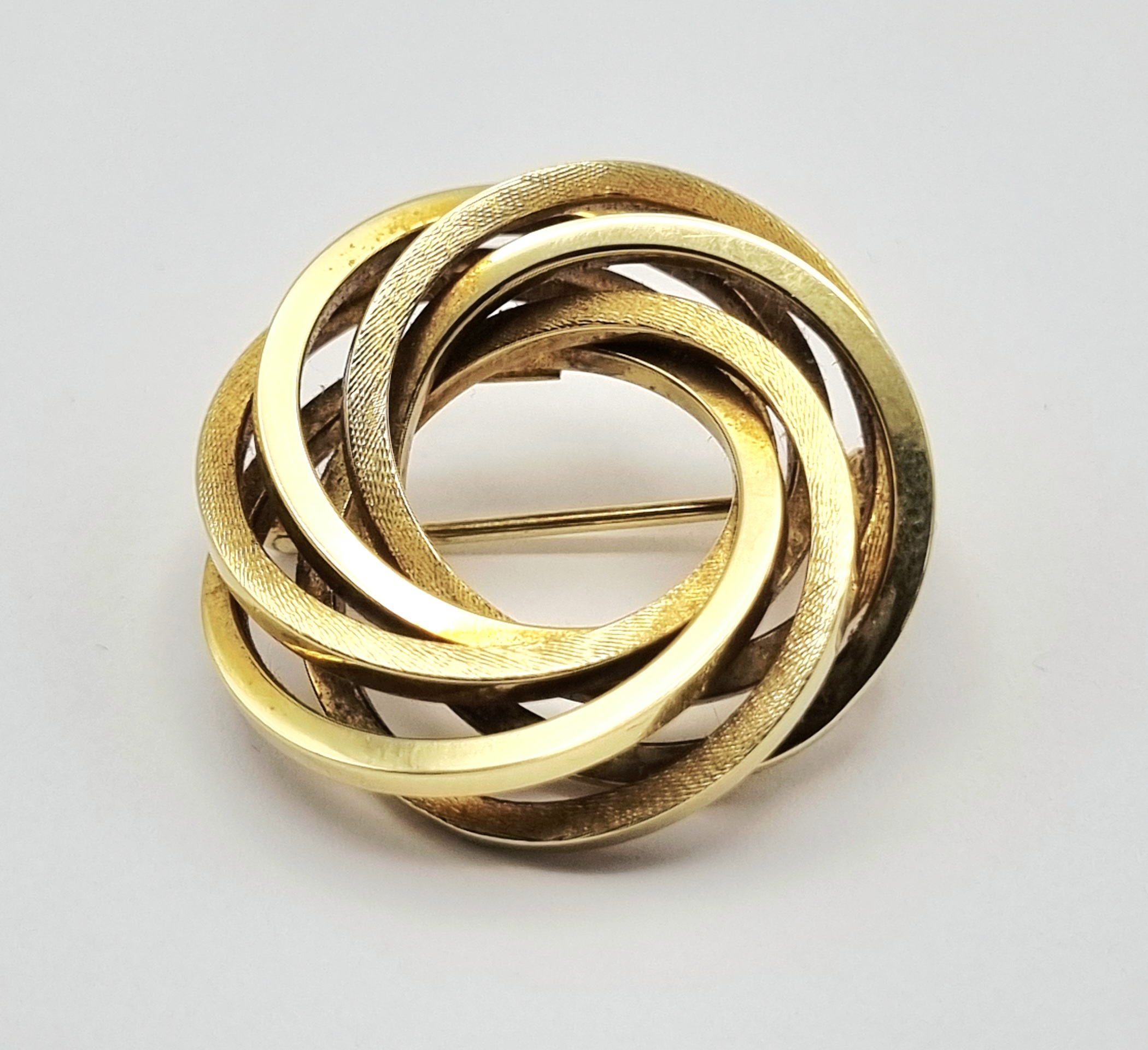 Gouden broche, abstracte spiraalvorm, midden 20e eeuw
