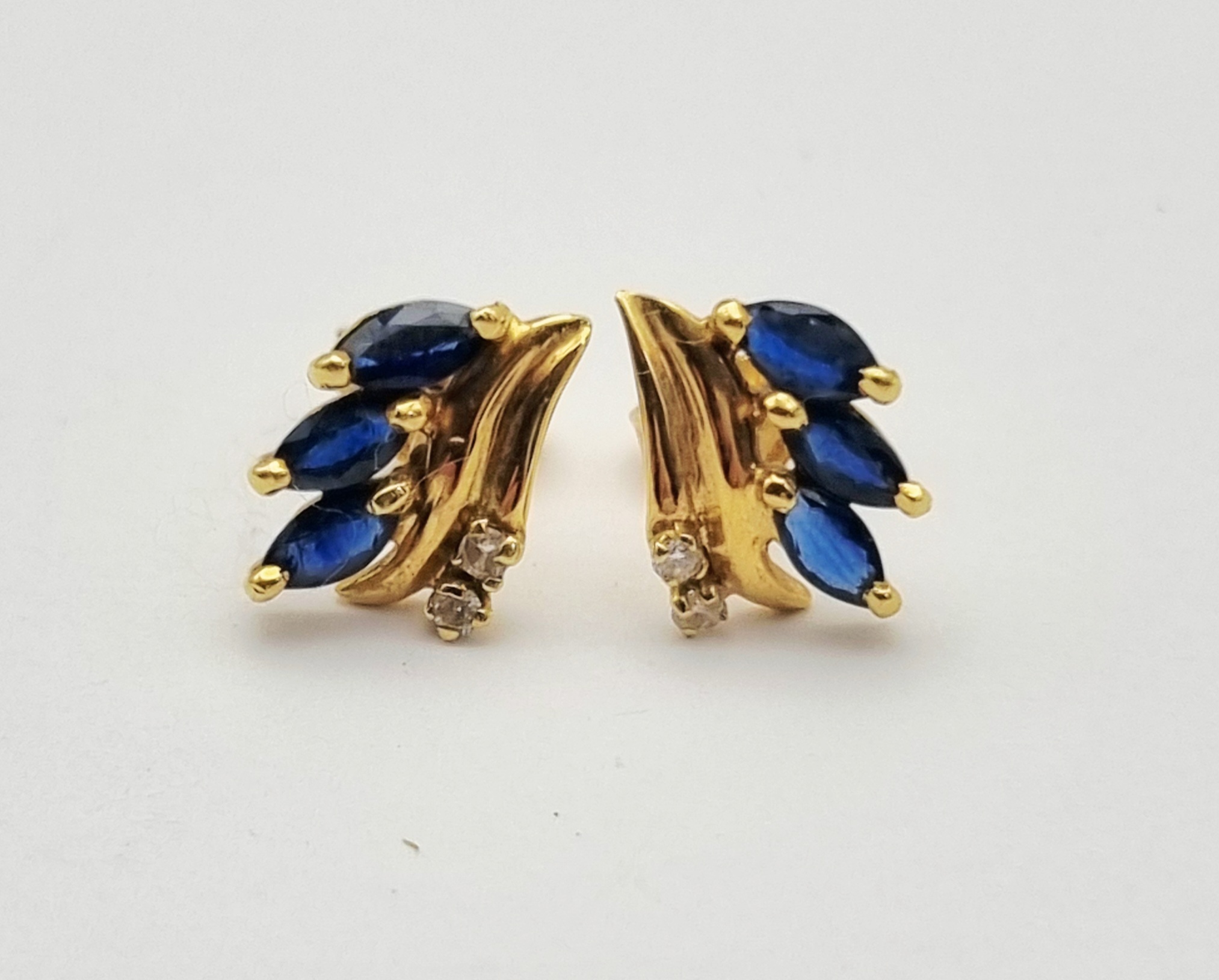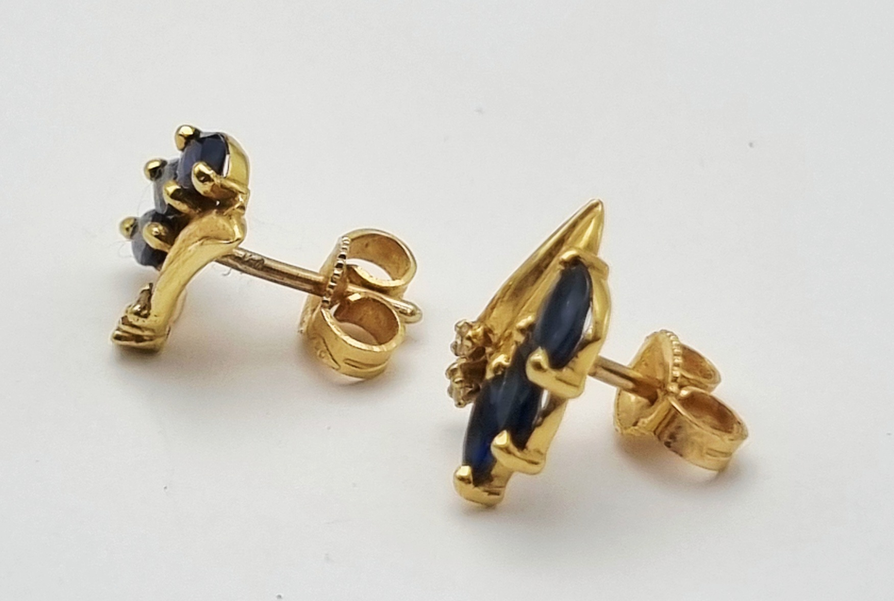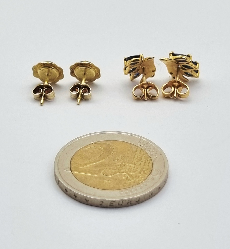 Twee paren gouden oorbellen van 14 karaat, gemerkt met het eikenblad en daterend eind 20e eeuw. Het ene paar is bezet met granaat en heeft een florale zetting. Het andere paar is bezet met blauwe stenen en diamantjes. Uitgevoerd in geelgoud met fijne gravure- en zetwerk. Geïnteresseerd? Bezoek onze kijkdagen op 29, 30 of 31 augustus van 11:00 tot 17:00 uur. |