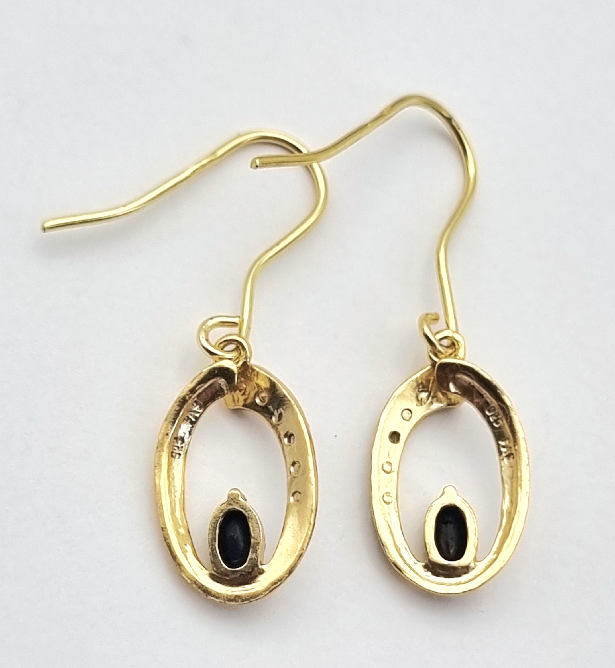 Twee paar oorbellen uit de 21e eeuw, bestaande uit 14 karaat geelgouden oorringen gemerkt met het Nederlandse eikenblad, en een paar vergulde sterling zilveren oorhangers met blauwe stenen en pavé gezette accenten, gemerkt 925. Beide paren combineren een eenvoudige vormgeving met sierlijke details. Klaar om te bieden? Registreer je nu en doe mee aan de veiling! |