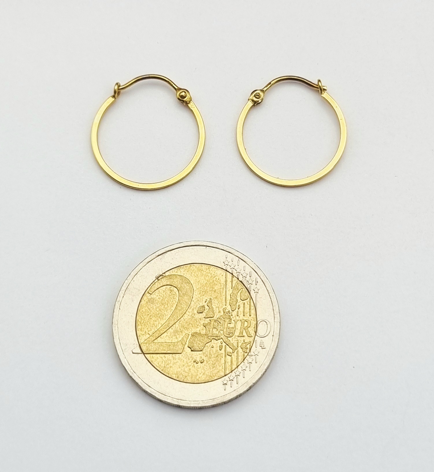 | Afmetingen | Gouden oorringen diameter 18 mm en gewicht 1,33 gram. Zilveren hangers lengte 20 mm en bruto gewicht 2,04. | |