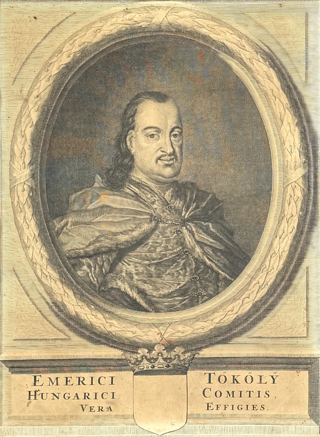 Kopergravure, portret van Imre Thököly, laat 17e eeuw, Hongarije
