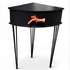 Hoekbijzettafel in eigentijdse designstijl, 21e eeuw. Uitgevoerd in zwart gelakt hout met metalen poten en voorzien van een ladefront met een rood kunststof handgreep in de vorm van een koraaltak. De tafel rust op smalle, taps toelopende poten. Kom langs tijdens de kijkdagen (29 t/m 31 augustus) en ontdek deze hoekbijzettafel zelf! |