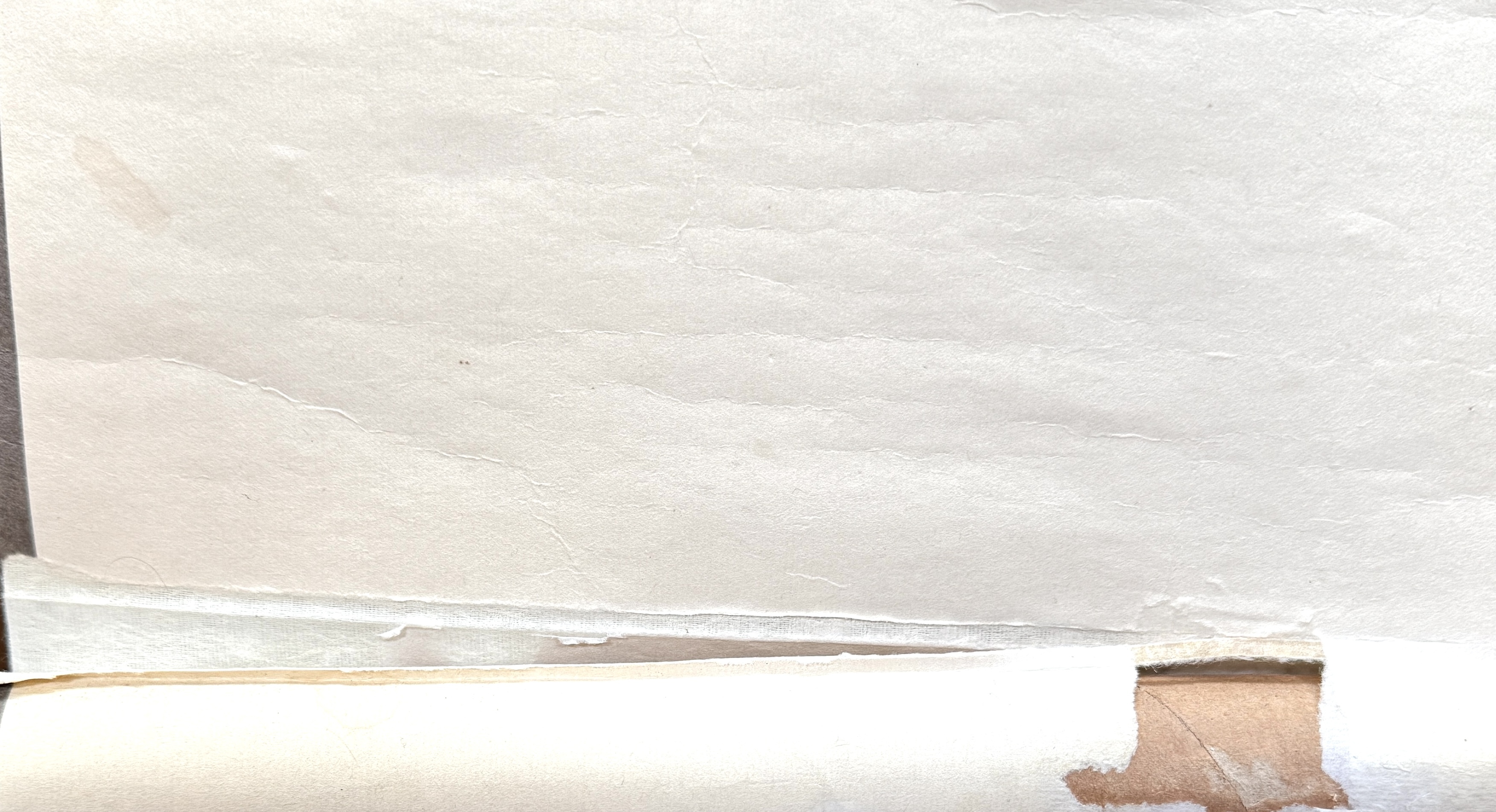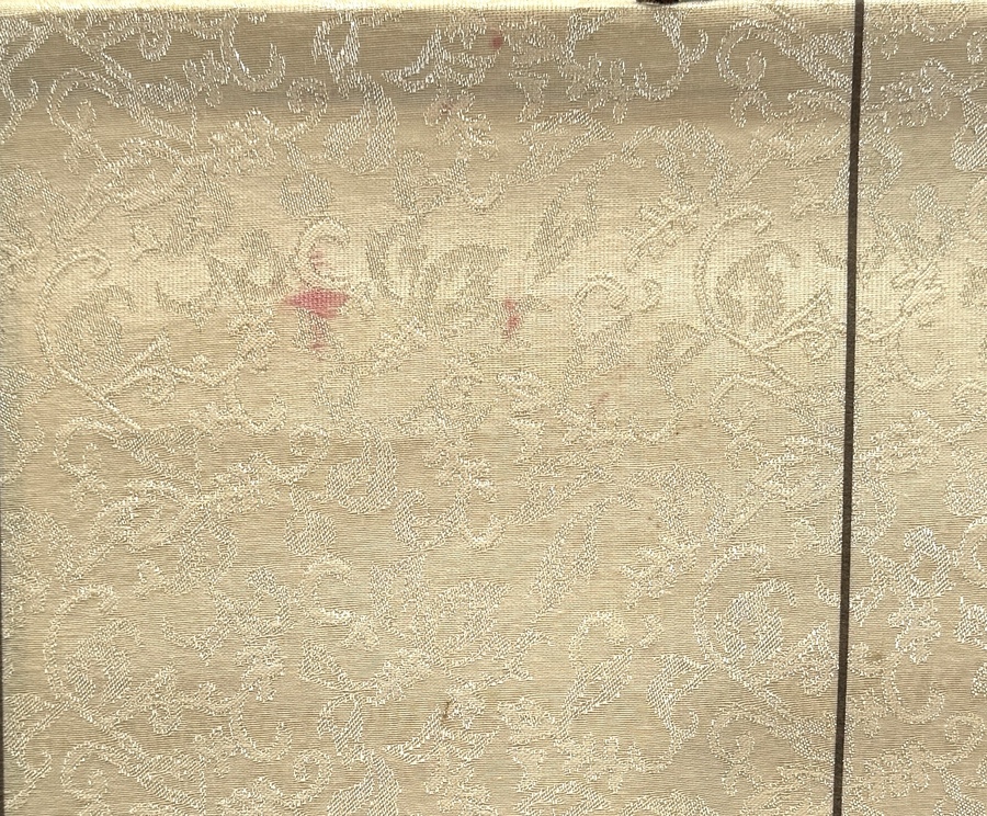 | Conditie | In redelijke staat; linksboven (roze) vlekjes en onderaan achterzijde laat ietwat los. | |