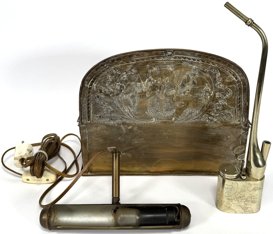 Schilderijlamp, borstelhouder en Chinese opiumpijp ca. 20e eeuw