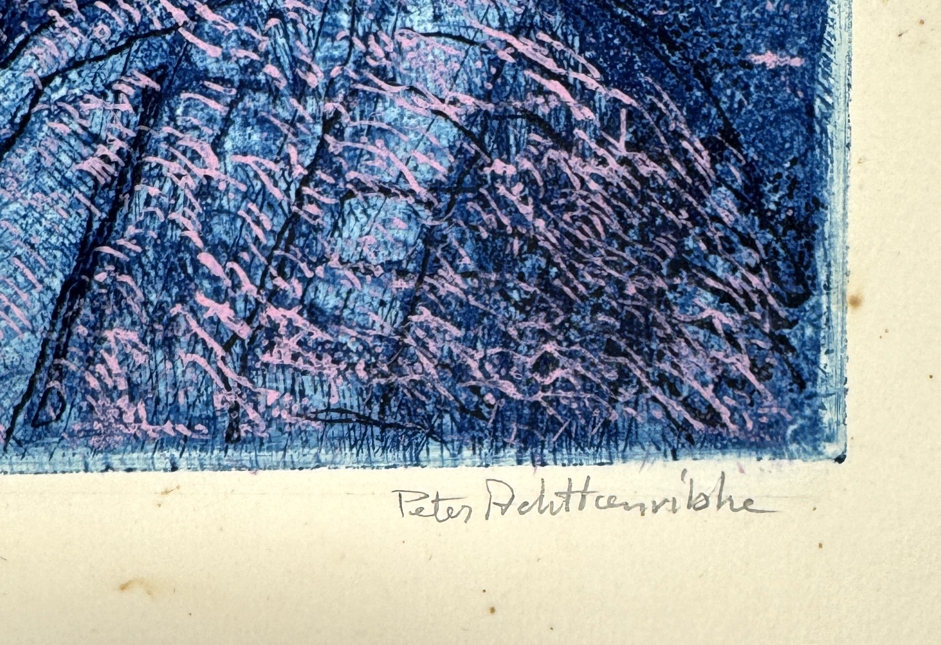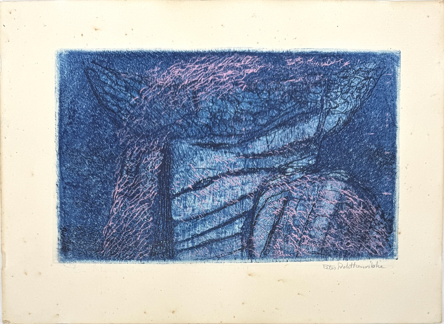 Ets in kleur van Peter Achttienribbe (geboren 1942, Groningen), tweede helft 20e eeuw. Uitgevoerd op papier in abstract-expressionistische stijl, met een grafische compositie in blauw en roze tonen. Rechtsonder met potlood gesigneerd. Deze ets zelf beoordelen? Je bent welkom op onze kijkdagen op 29, 30 en 31 augustus! |