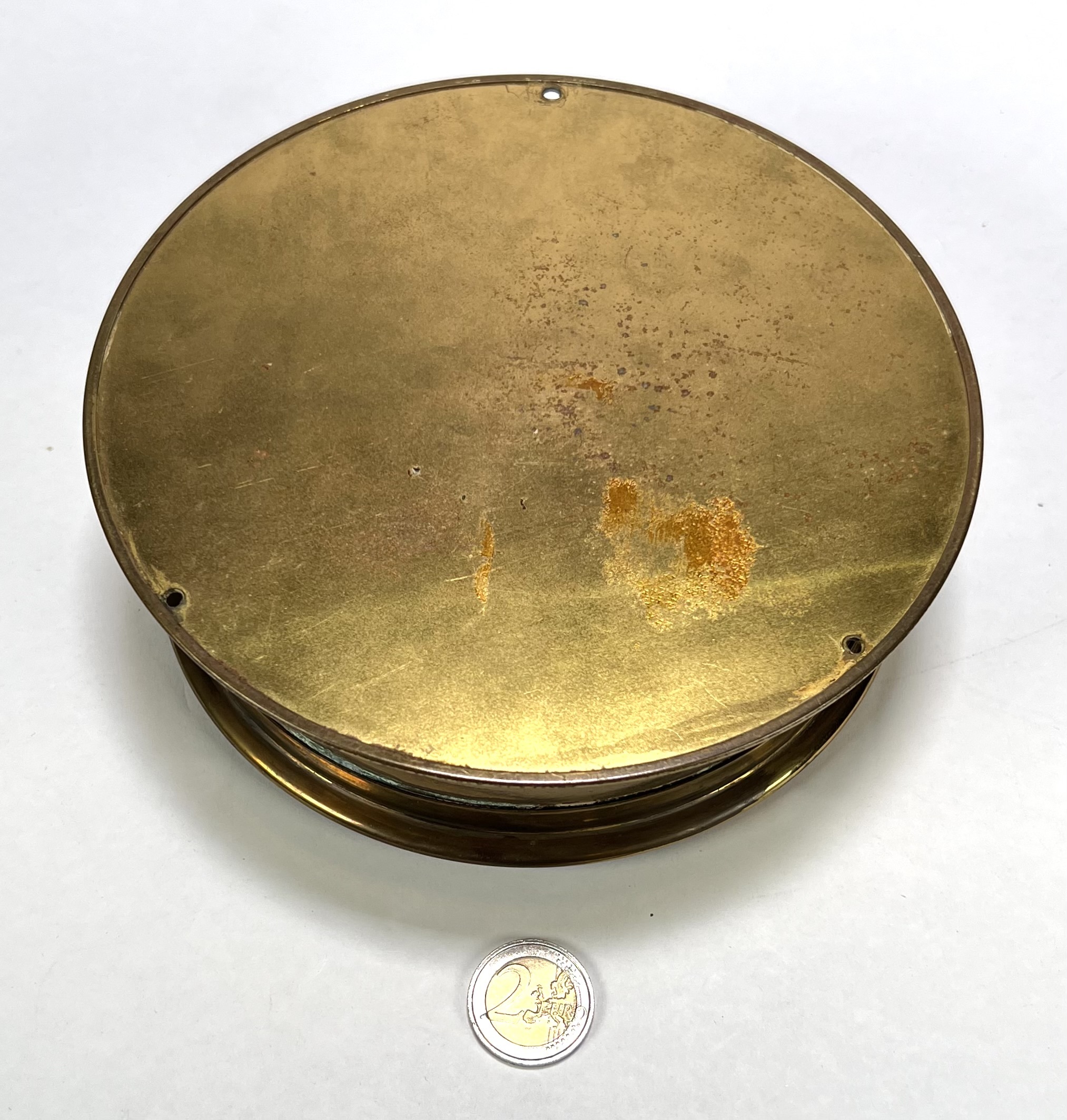 Messing scheepsklok in functionele nautische stijl, gemaakt door Bayard, Frankrijk, midden 20e eeuw. De ronde messing kast bevat een 8-daags mechanisch uurwerk met gemerkte wijzerplaat “Bayard 8 day” en “Made in France” onderaan. Te zien zijn dubbele 12- en 24-uursaanduiding, kleine secondewijzer boven het midden en robuuste messing behuizing met schroefplaat aan de achterzijde. Wil je deze scheepsklok in het echt bekijken? Kom naar de kijkdagen op 29, 30 en 31 augustus! |