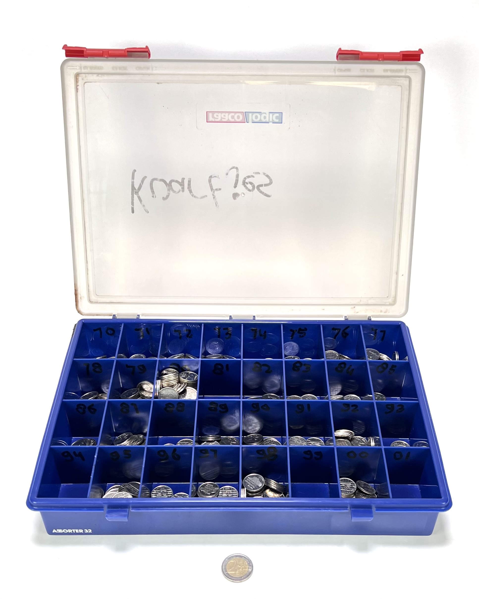 Verzameling Nederlandse kwartjes (25 cent) geslagen door de Koninklijke Nederlandse Munt, 1970 tot en met 2001. Nikkel circulatiemunten met gekartelde rand, in sorteerdoos met genummerde vakken per jaartal. Klaar om te bieden? Registreer je nu en doe mee aan de veiling! |