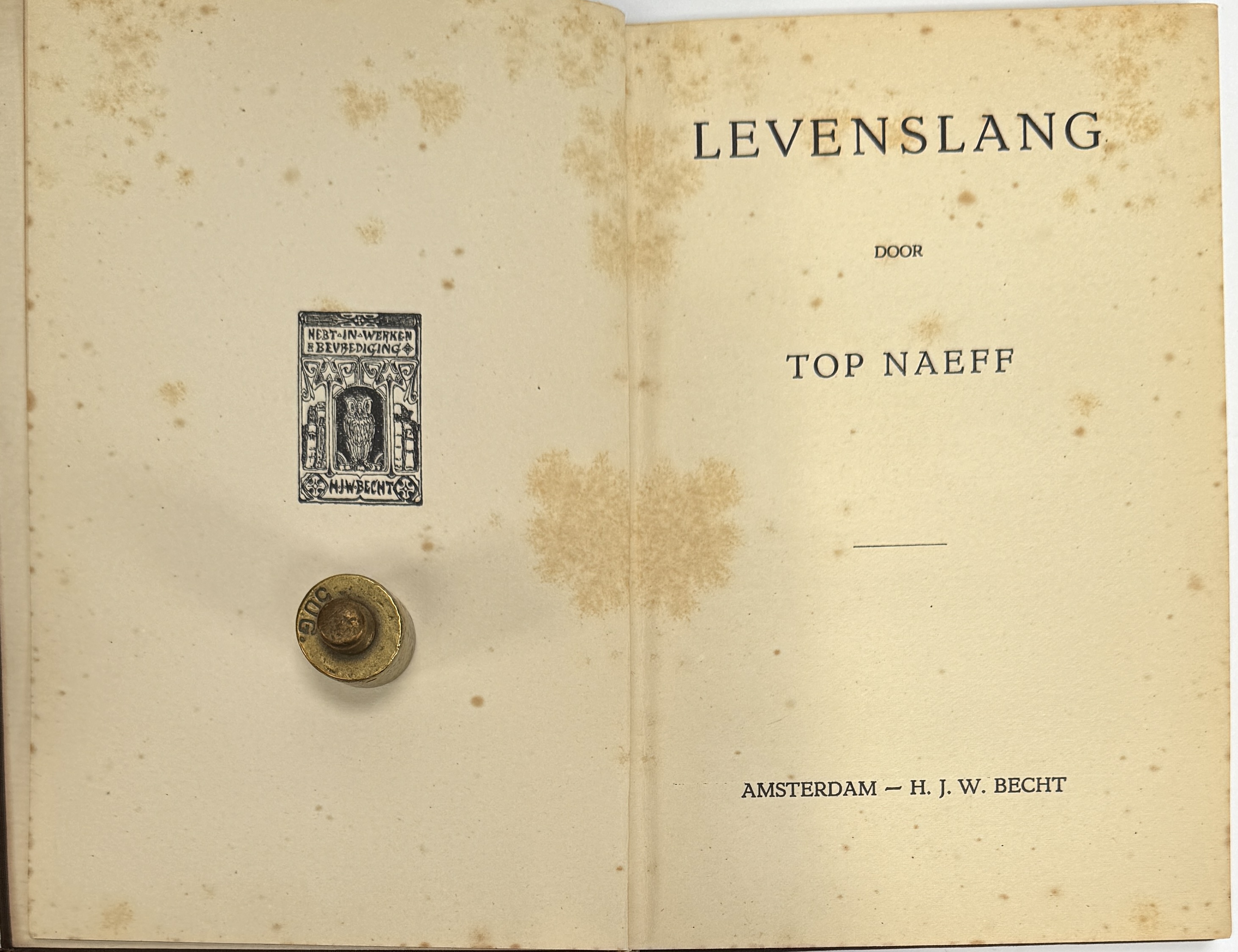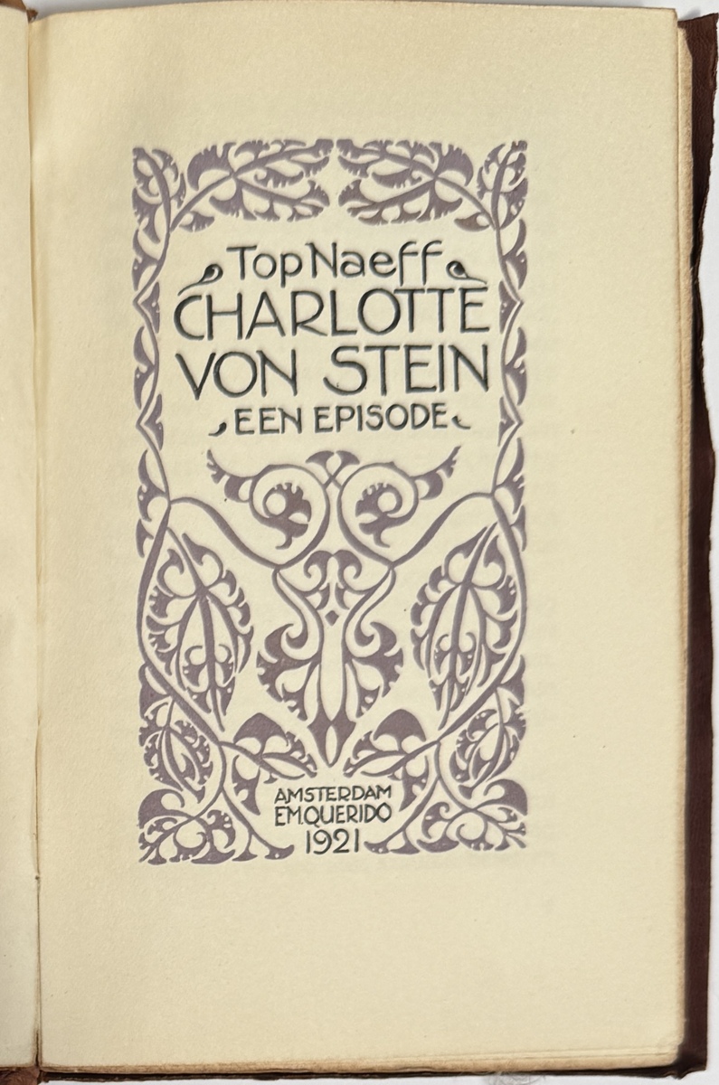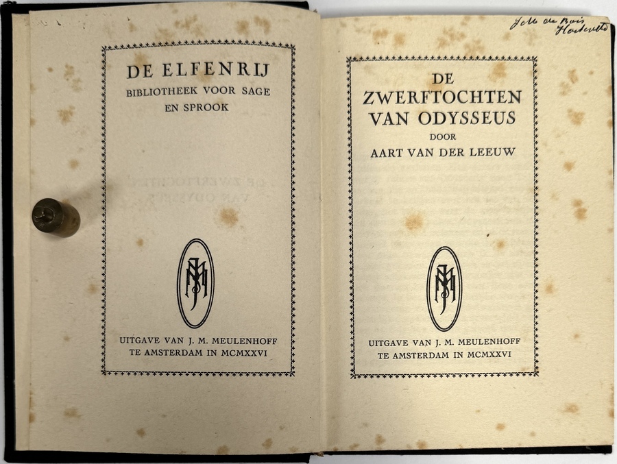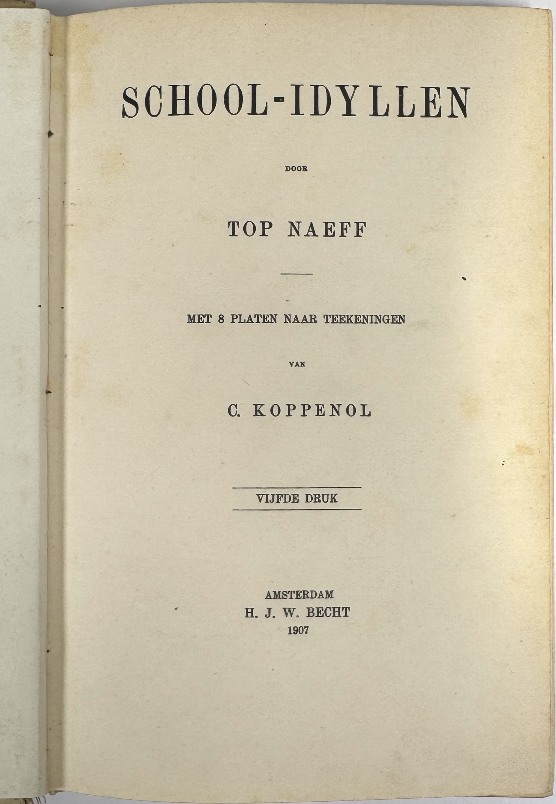Acht boeken: ‘Ellen de Pop’ - E. Gehrke, ‘De zwerftochten van Odysseus’ - A. van der Leeuw, ‘De kinderen van den Hugenoot’ - P.J. Andriessen, ‘De koopman van Venetië’ - W. Shakespeare (vertaling E.B. Koster) en viermaal Top Naeff (‘Levenslang’, ‘Charlotte von Stein’, ‘Klein avontuur’ en ‘School-idyllen’). Variërend van hardcover, softcover, gekartonneerd, fluweel, linnen en kunstleder. Veelal naam in inkt geschreven op het schutblad voorin, begin 20e eeuw. Geïnteresseerd? Bezoek onze kijkdagen voor een persoonlijke bezichtiging! |