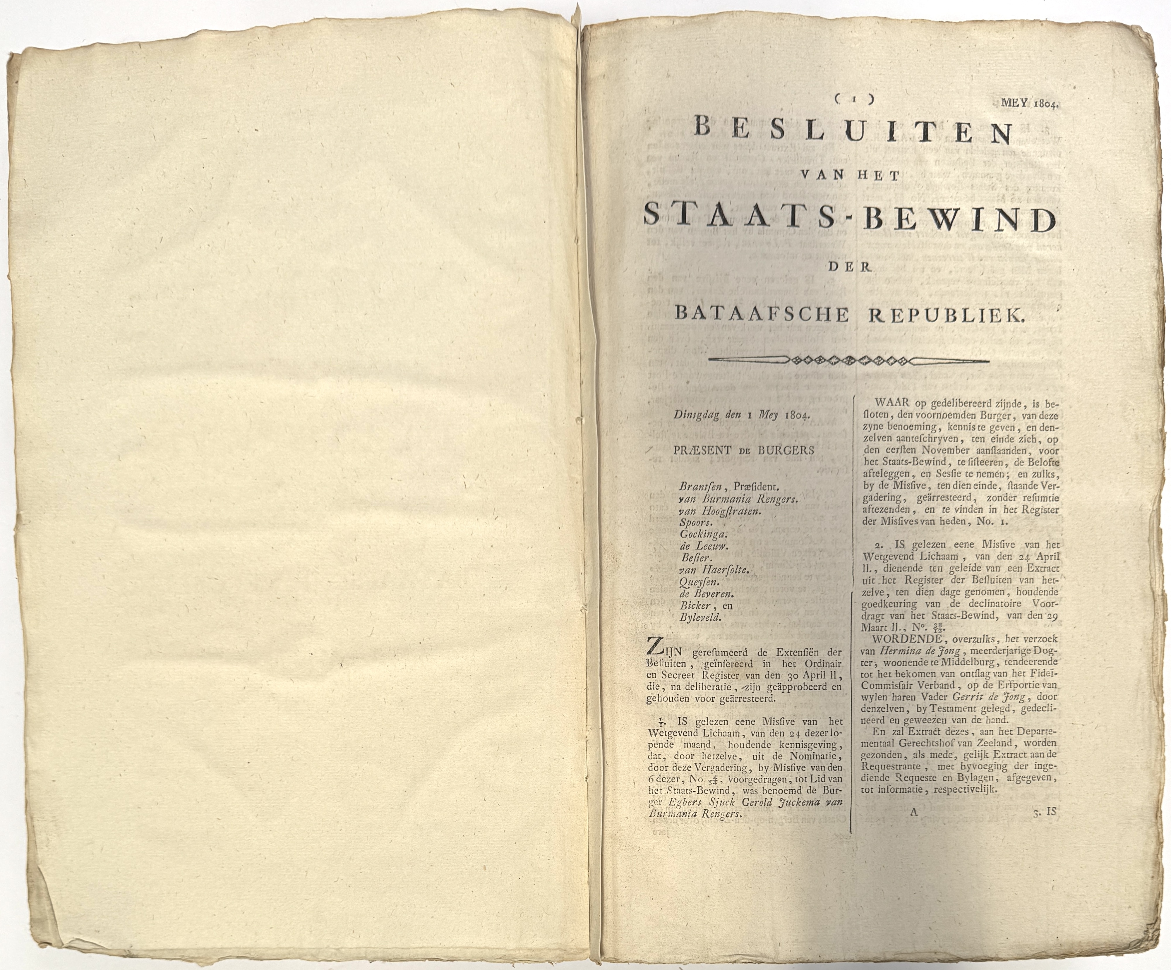 Boeken: Besluiten van het Staats-bewind & De Nederlandsche Stad- en Dorp-beschrijver, ca. 1800