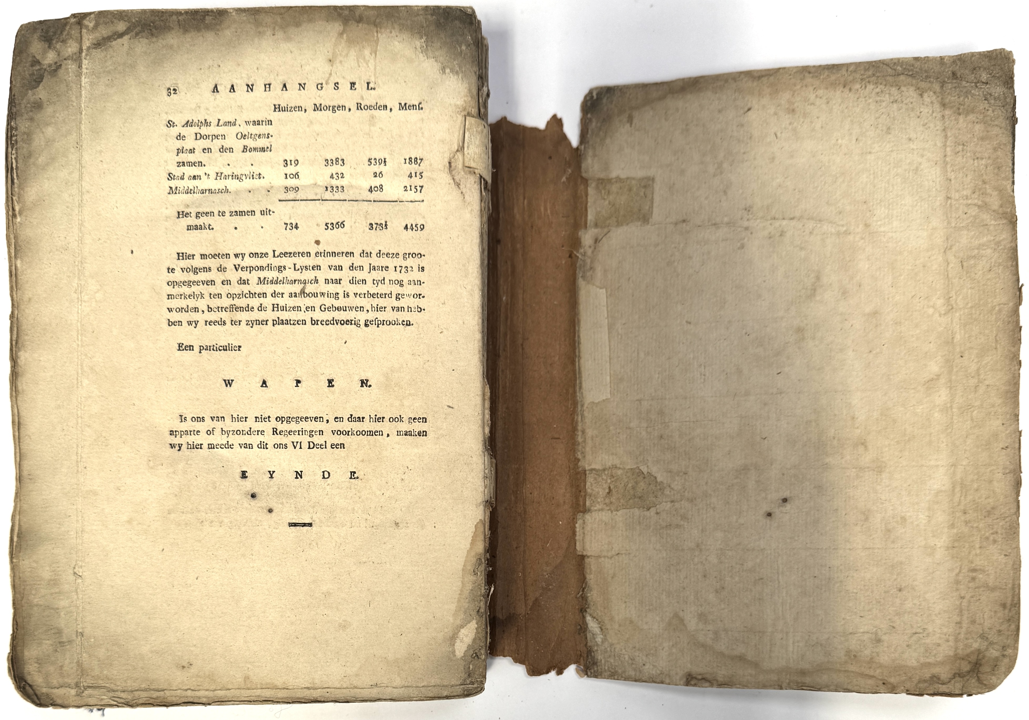 | Kavelnummer en naam | 1210. Boeken: Besluiten van het Staats-bewind & De Nederlandsche Stad- en Dorp-beschrijver, ca. 1800 | |