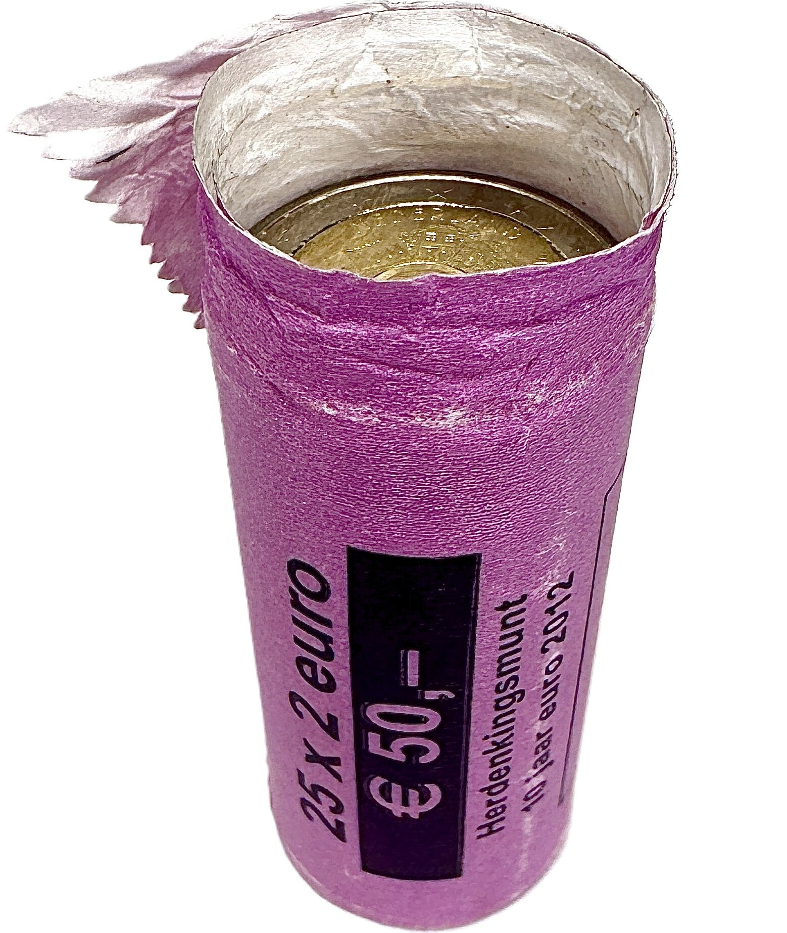 Een papieren koker met vijfentwintig Nederlandse €2 herdenkingsmunten. De set, uitgegeven door de Koninklijke Nederlandse Munt, herdenkt 10 jaar euro. De munten en de koker zijn gedateerd 2012. De munten zijn vervaardigd van bi-metaal (messing en koper) en geslagen met de techniek van het munten slaan. De keerzijde van de munt toont een wereldbol met symbolen van Europa. Wil je direct deelnemen? Plaats vanaf 22 augustus alvast een schriftelijk bod via onze website! |