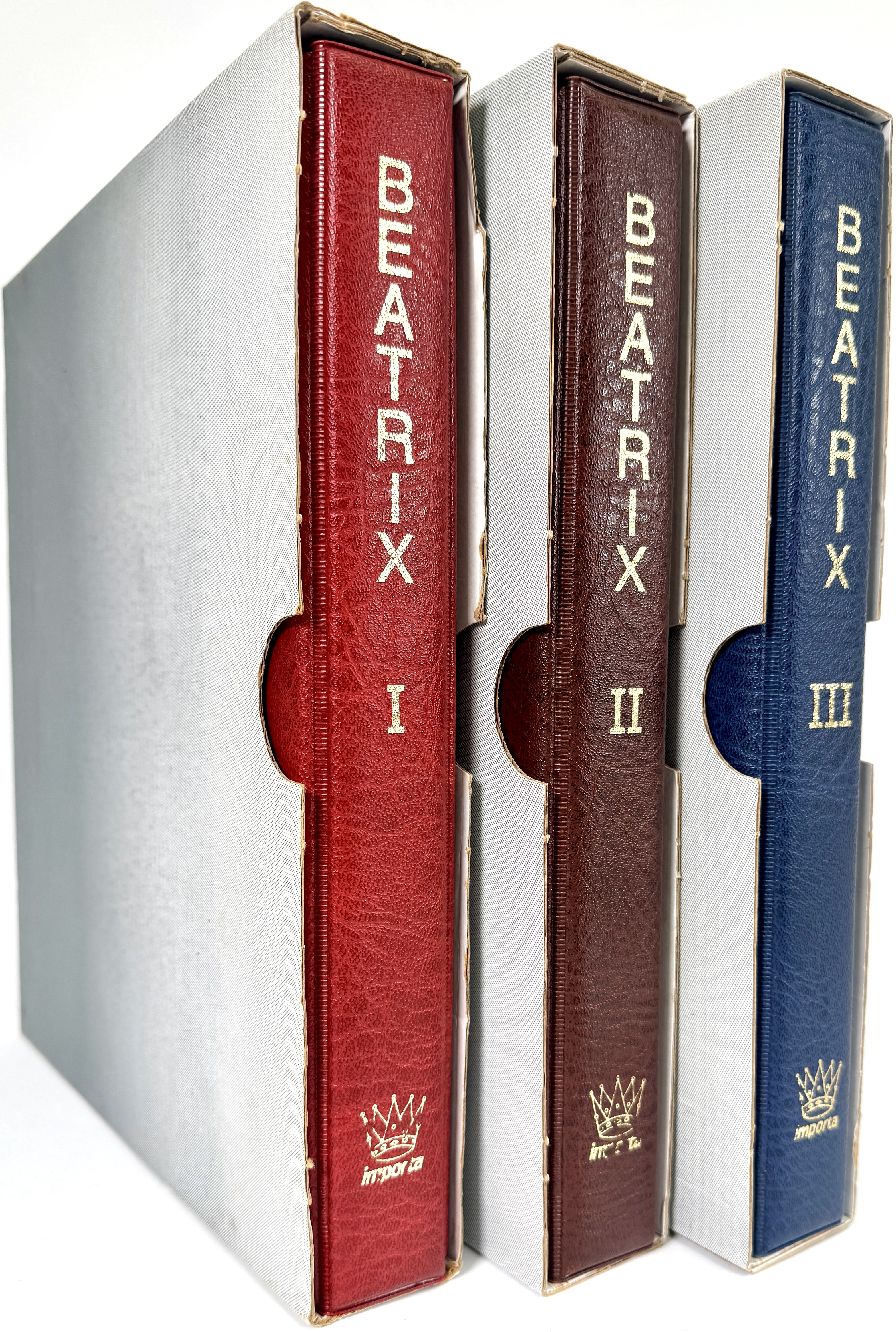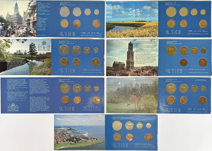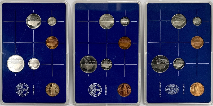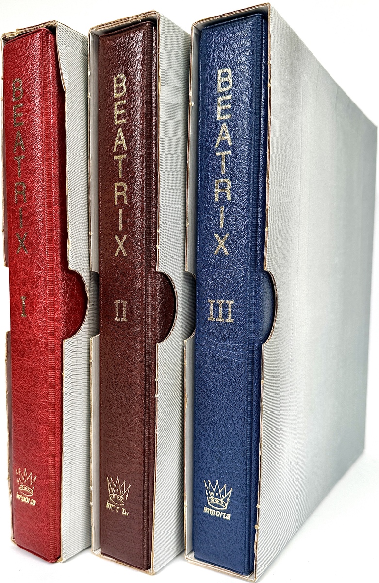 Drie bewaaralbums “Beatrix I, II, III” van Importa met Nederlandse muntensets, vervaardigd door De Nederlandse Munt, daterend uit circa 1990–1999. Uitgevoerd in nikkel, koper en messing, in machinaal geslagen munttechniek en gepresenteerd in drukwerk mappen met regionale thema’s. Volledige series guldens en euro’s in officiële muntkwaliteit. Wil je direct deelnemen? Plaats vanaf 22 augustus alvast een schriftelijk bod via onze website! |