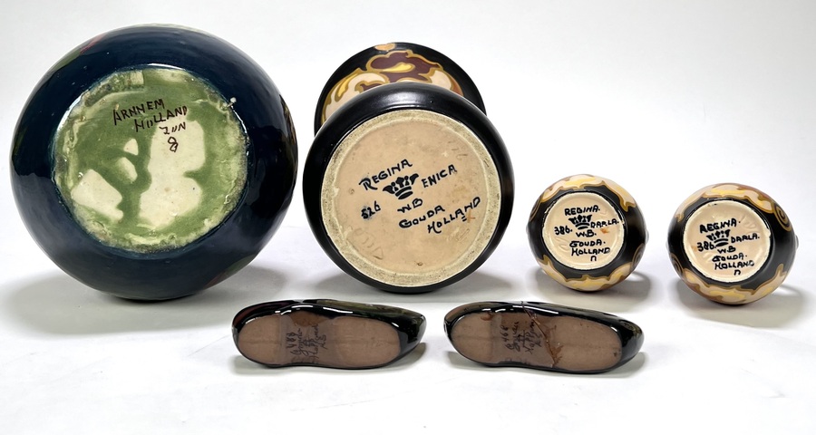 Keramiek vazen en klompjes, Art Deco/Art Nouveau, 1920–1935, Gouda en Arnhem Holland
