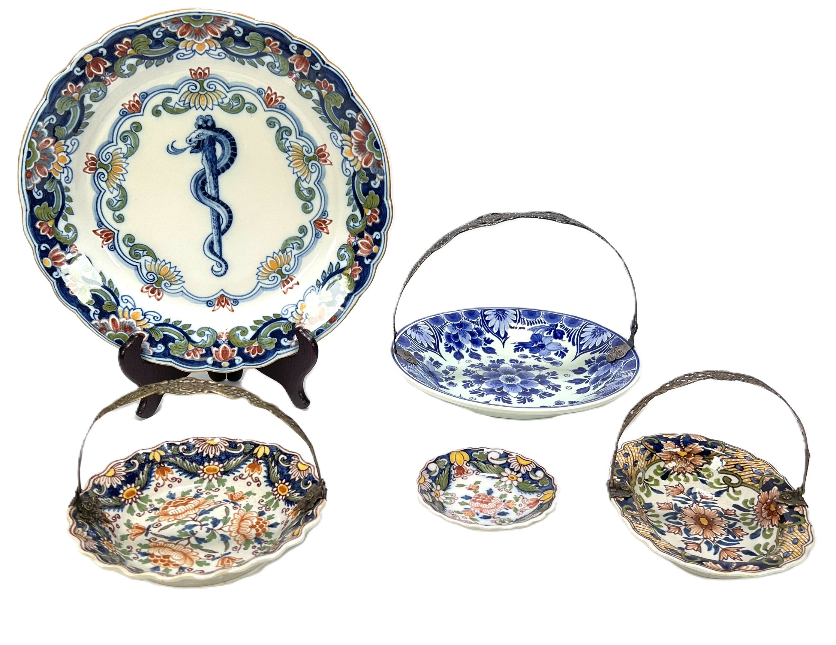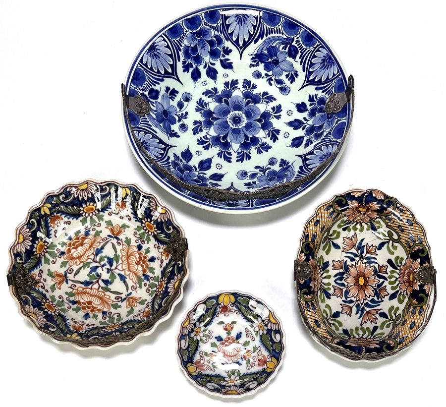 De serveerschalen en wandborden zijn vervaardigd in Makkum en door De Porceleyne Fles in de tweede helft van de 20e eeuw.. De stukken zijn met de hand beschilderd en zijn voorzien van florale decoraties. De objecten variëren in vorm en grootte, onderzijden gemerkt. Het aardewerk zelf beoordelen? Je bent welkom op onze kijkdagen op 29, 30 en 31 augustus! |