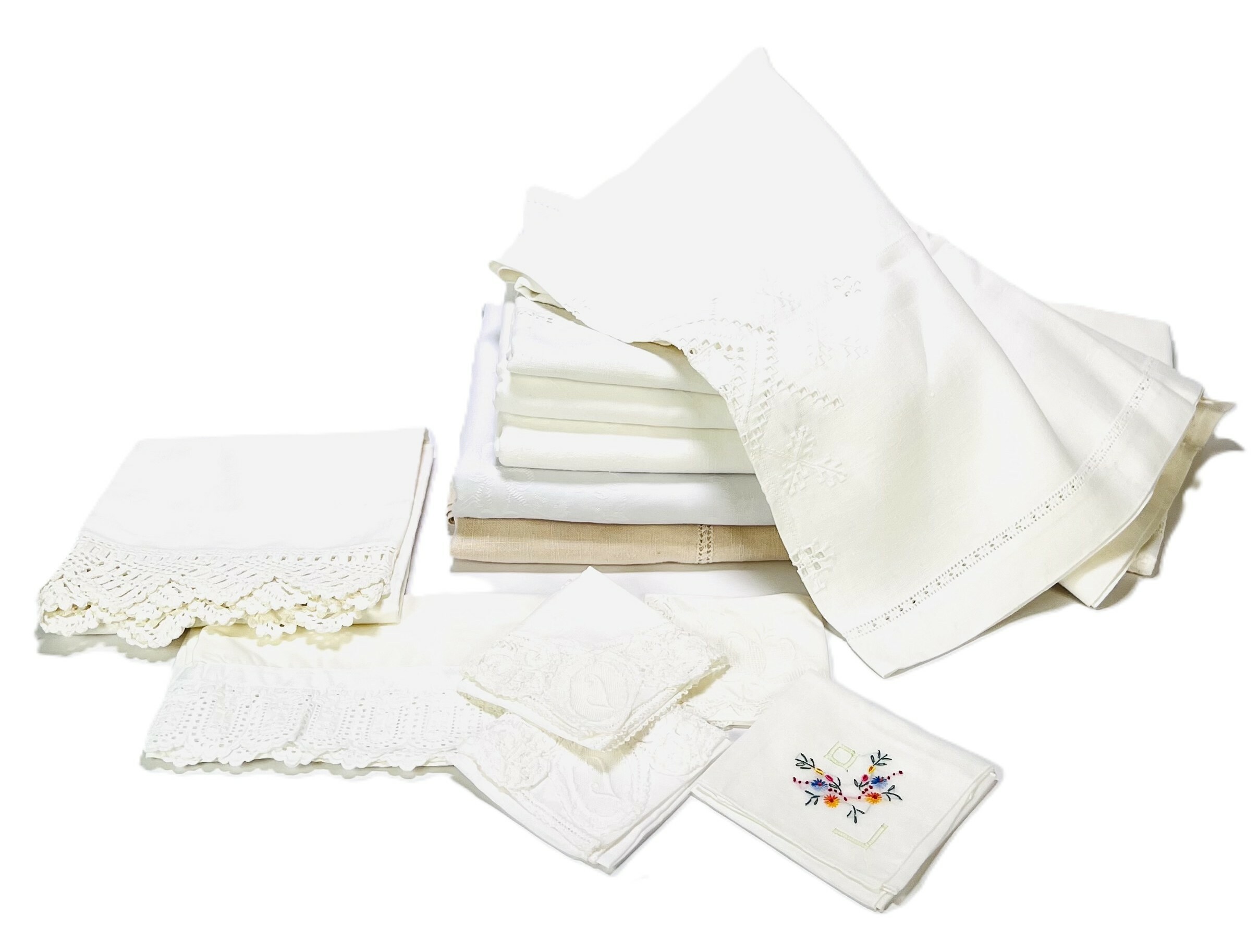 Lot huishoudelijk textiel, eind 19e eeuw – eerste helft 20e eeuw, uitgevoerd in linnen en katoen. Handgeborduurd en machinaal geweven met haakwerk, open zoomwerk en witwerkborduurtechniek. Kenmerkend zijn de geborduurde florale patronen, gehaakte randen en één doek met polychroom bloemenmotief en initialen "LD". De verzameling omvat tafellinnen, servetten en kussenslopen. Zeker zijn van deelname? Plaats vanaf 22 augustus een schriftelijk bod online! |
