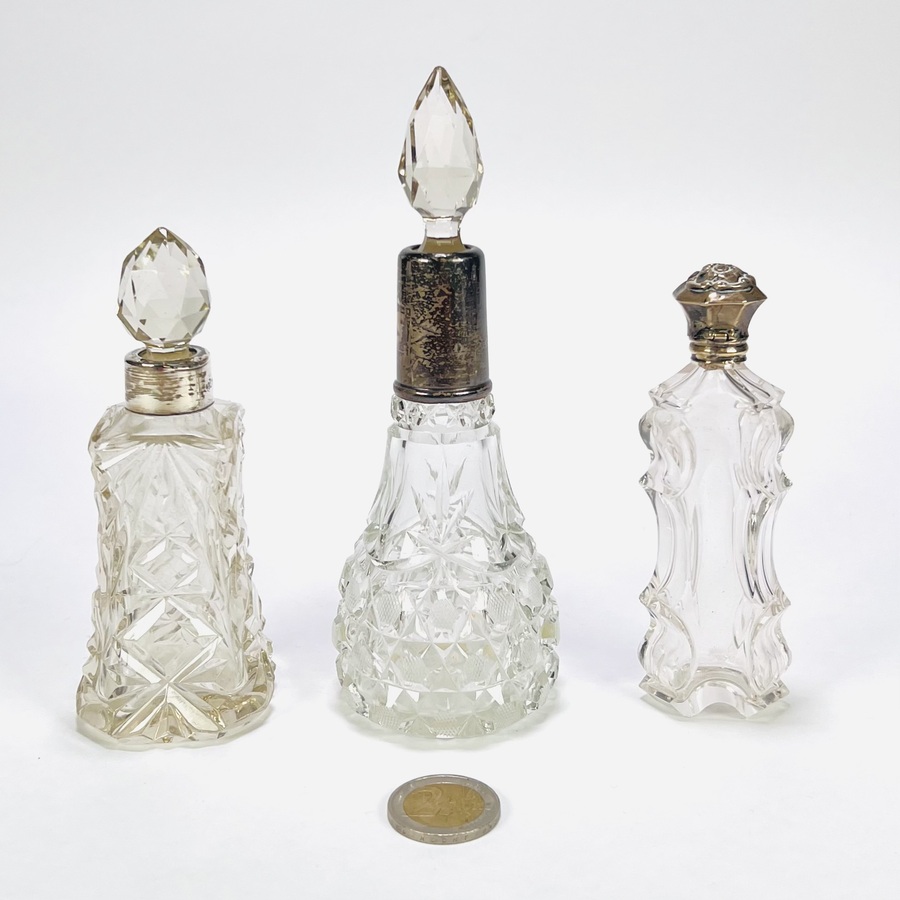 Art Nouveau kristallen parfumflesjes met zilver, ca. 1900–1930