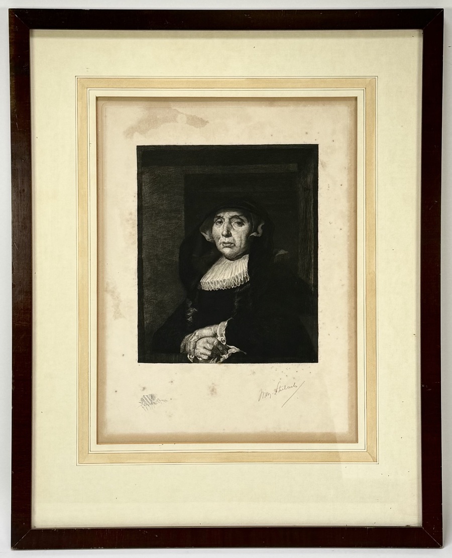 Prent in classicistische stijl voorstellende Bayken Van Bracht naar Govert Flinck, vroege 20e eeuw. Uitgevoerd op papier, in ets techniek. Rechtsonder met potlood onduidelijk gesigneerd. Gevat in houten lijst met passe-partout. Zeker zijn van deelname? Plaats vanaf 22 augustus een schriftelijk bod online! |