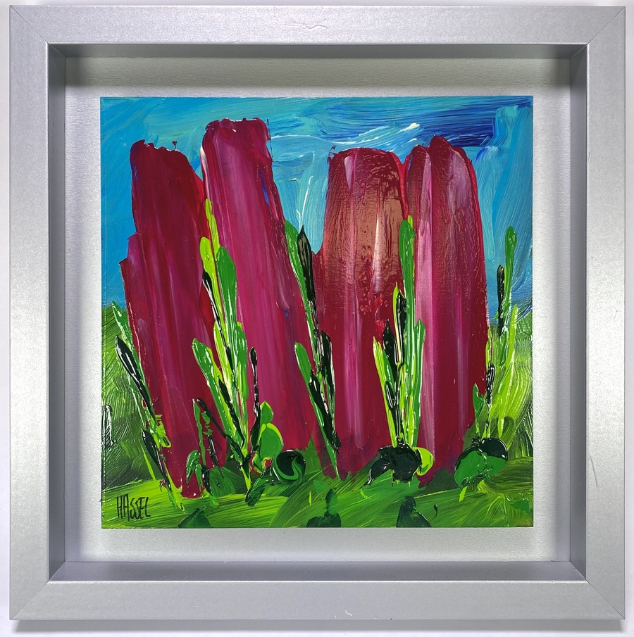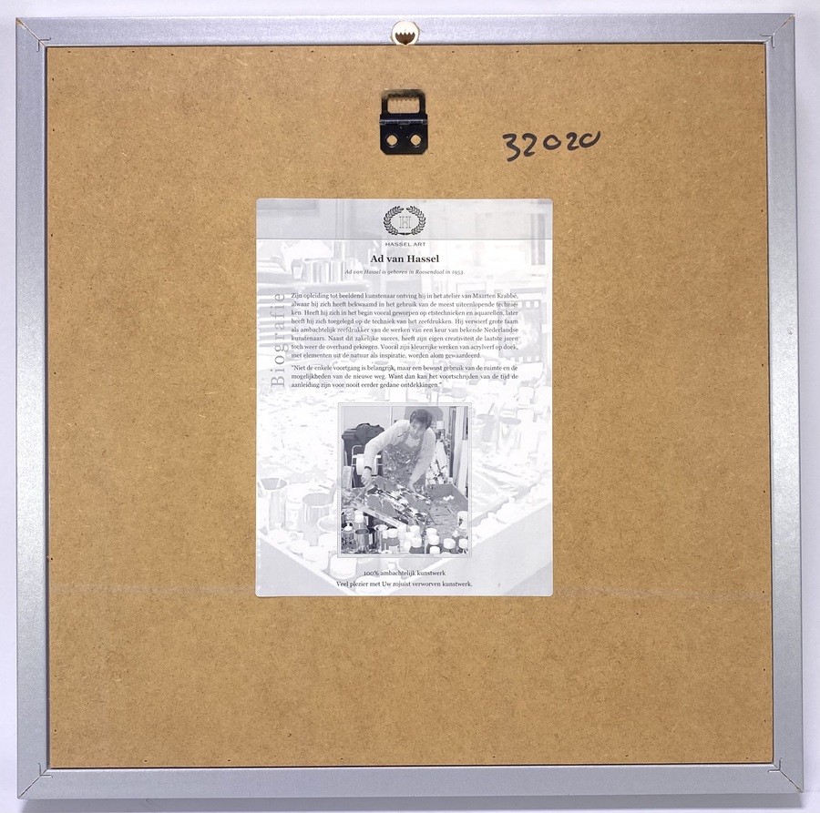 Schilderij van Ad van Hassel (geboren 1953), uitgevoerd in expressief-abstracte stijl met acrylverf op board in aluminium lijst. Het werk toont krachtige rode, paarse en groene vormen met contrasterende blauwe achtergrond, in pasteuze verflagen aangebracht. Linksonder gesigneerd “HASSEL” in zwarte verf. Verso informatie. Eerst dit schilderij zien voordat je biedt? Bezoek onze kijkdagen op 29, 30 en 31 augustus van 11:00 tot 17:00 |