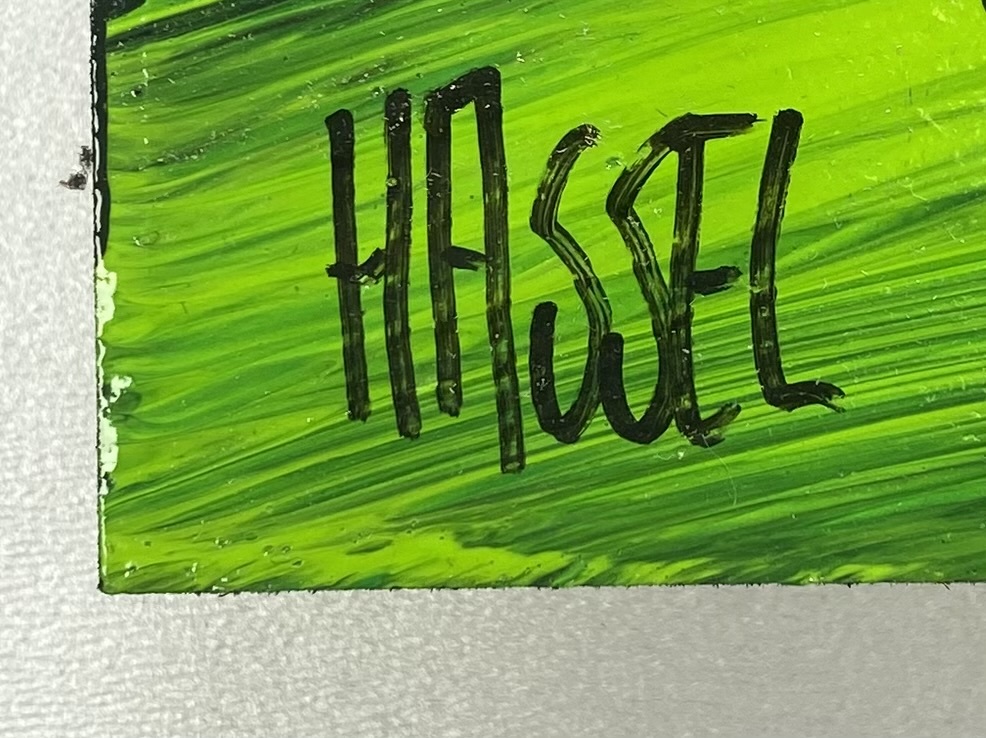 | Kavelnummer en naam | 1360. Schilderij Ad van Hassel, abstract landschap, ca. eind 20e eeuw | |