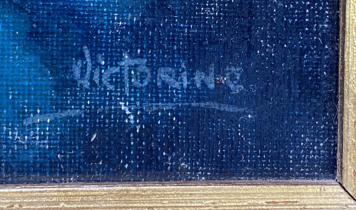 Schilderij in naïef-realistische stijl, omstreeks midden 20e eeuw, op doek met olieverf uitgevoerd. Rechtsonder gesigneerd Victorina. De voorstelling toont een Madonna-achtige figuur met twee kinderen, waaronder een engelachtig kind met bloemen en een baby met stralenkrans. Wil je dit schilderij in het echt bekijken? Kom naar de kijkdagen op 29, 30 en 31 augustus! |