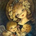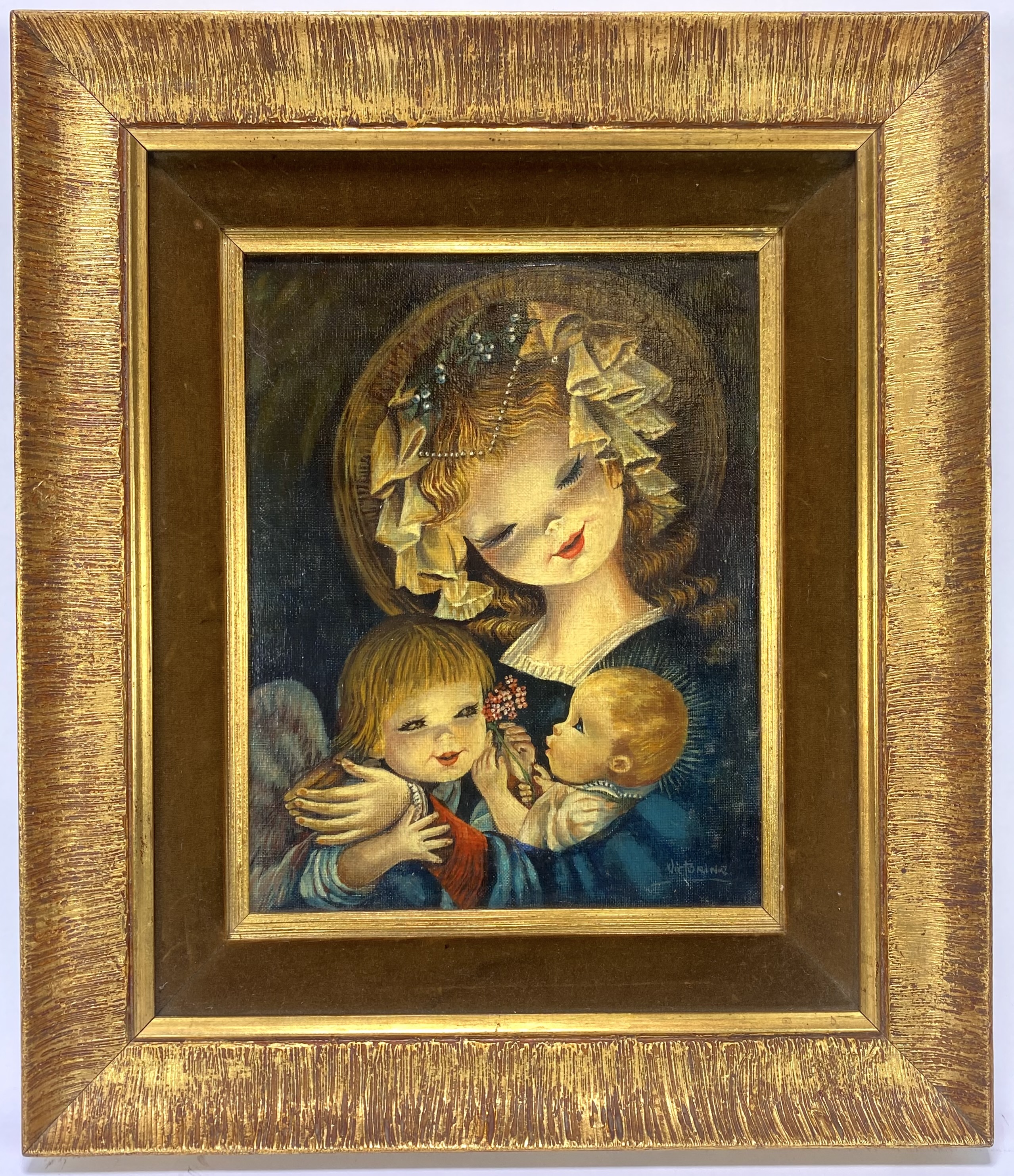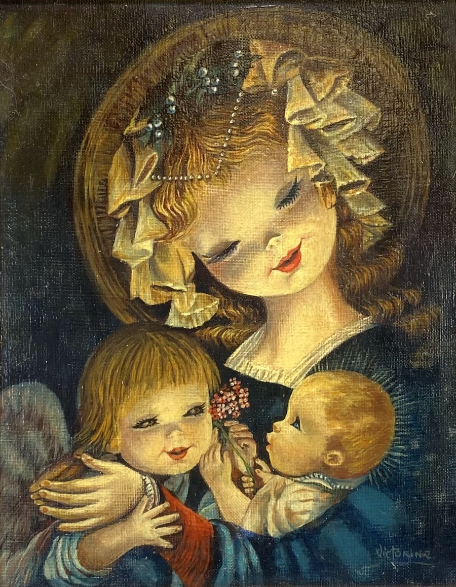 Olieverfschilderij Victorina, Madonna met kinderen, midden 20e eeuw