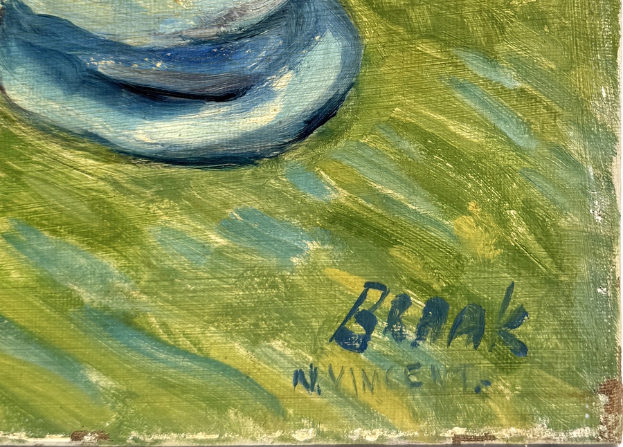 Olieverfschilderij Braak N. Vincent, bloemstilleven, ca. 1950