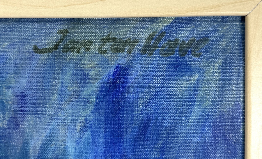 Schilderij in expressieve stijl van Jan ten Have (1903–1991), 20e eeuw, uitgevoerd in olieverf op doek. Het bloemstilleven toont een vaas met rode, gele en witte bloemen op een tafel. Gesigneerd rechtsboven Jan ten Have. Het doek is opgespannen op een houten spieraam en gevat in een lichte houten lijst. Dit schilderij zelf beoordelen? Je bent welkom op onze kijkdagen op 29, 30 en 31 augustus! |