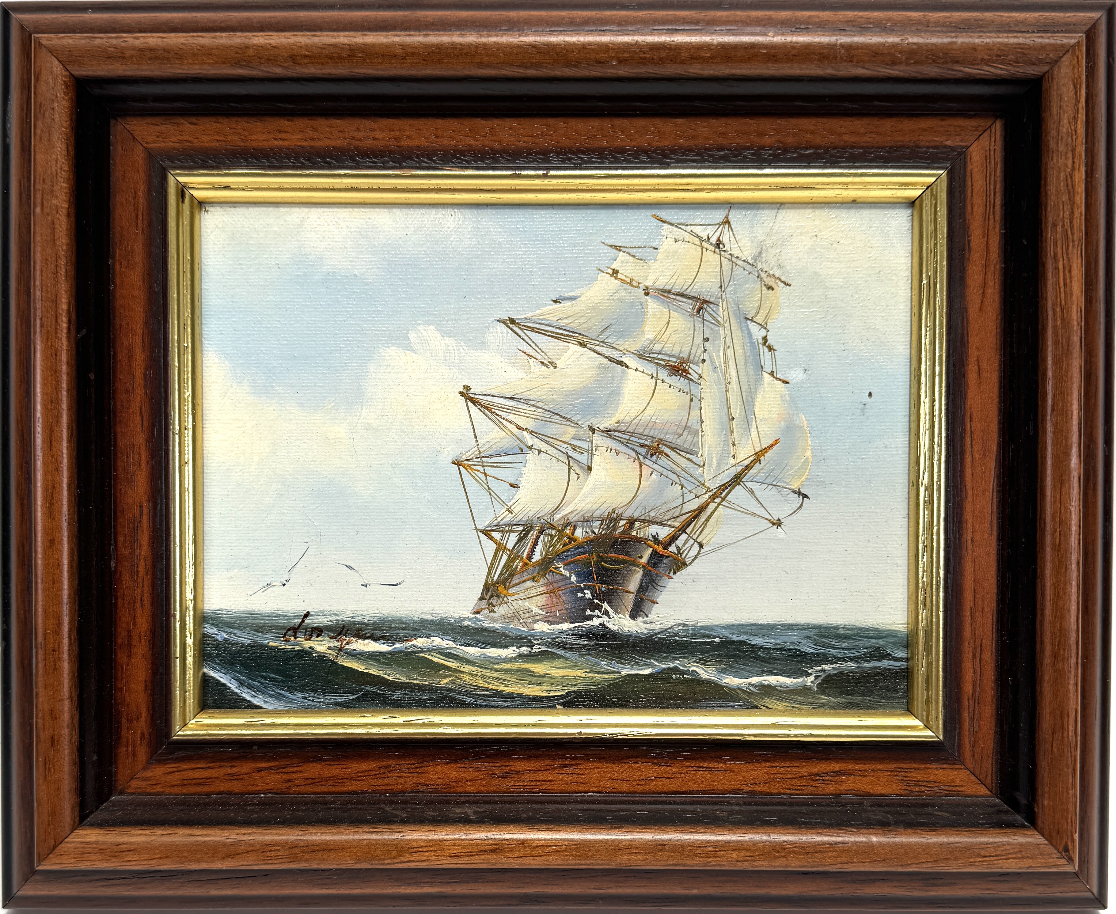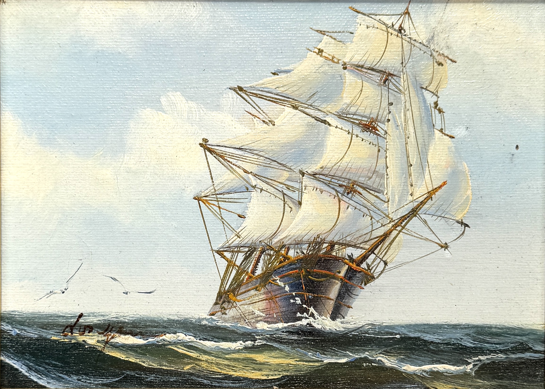Olieverfschilderij, zeilschip, eind 20e eeuw