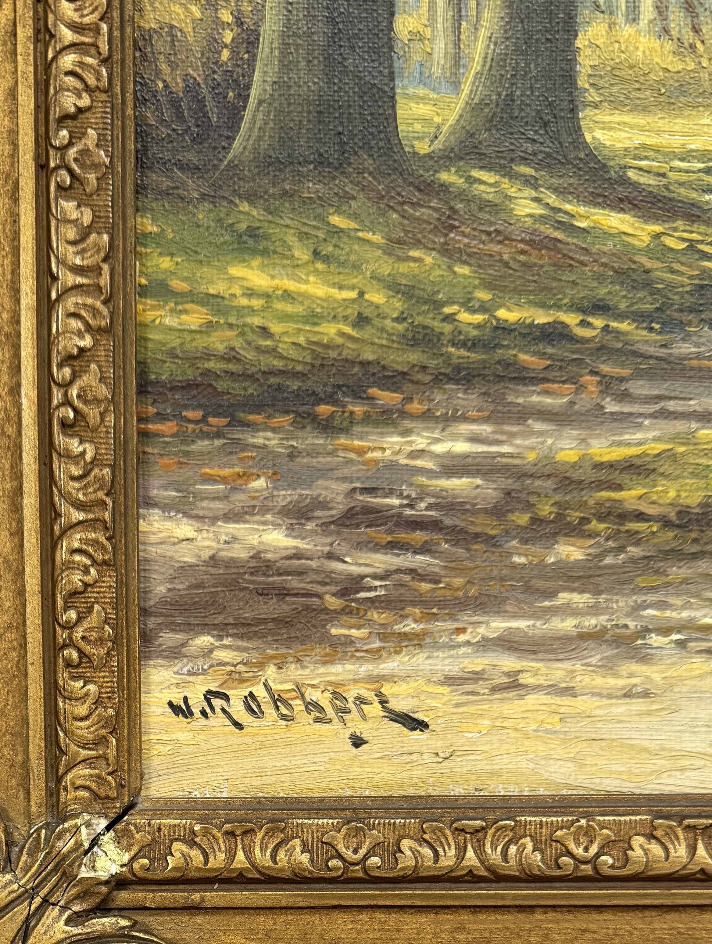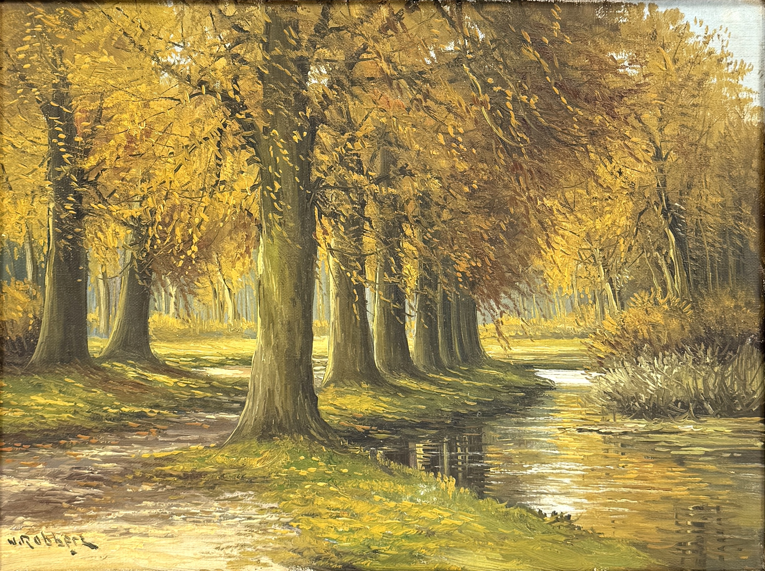 Olieverfschilderij W. Robbers, laan in herfstkleuren, midden 20e eeuw