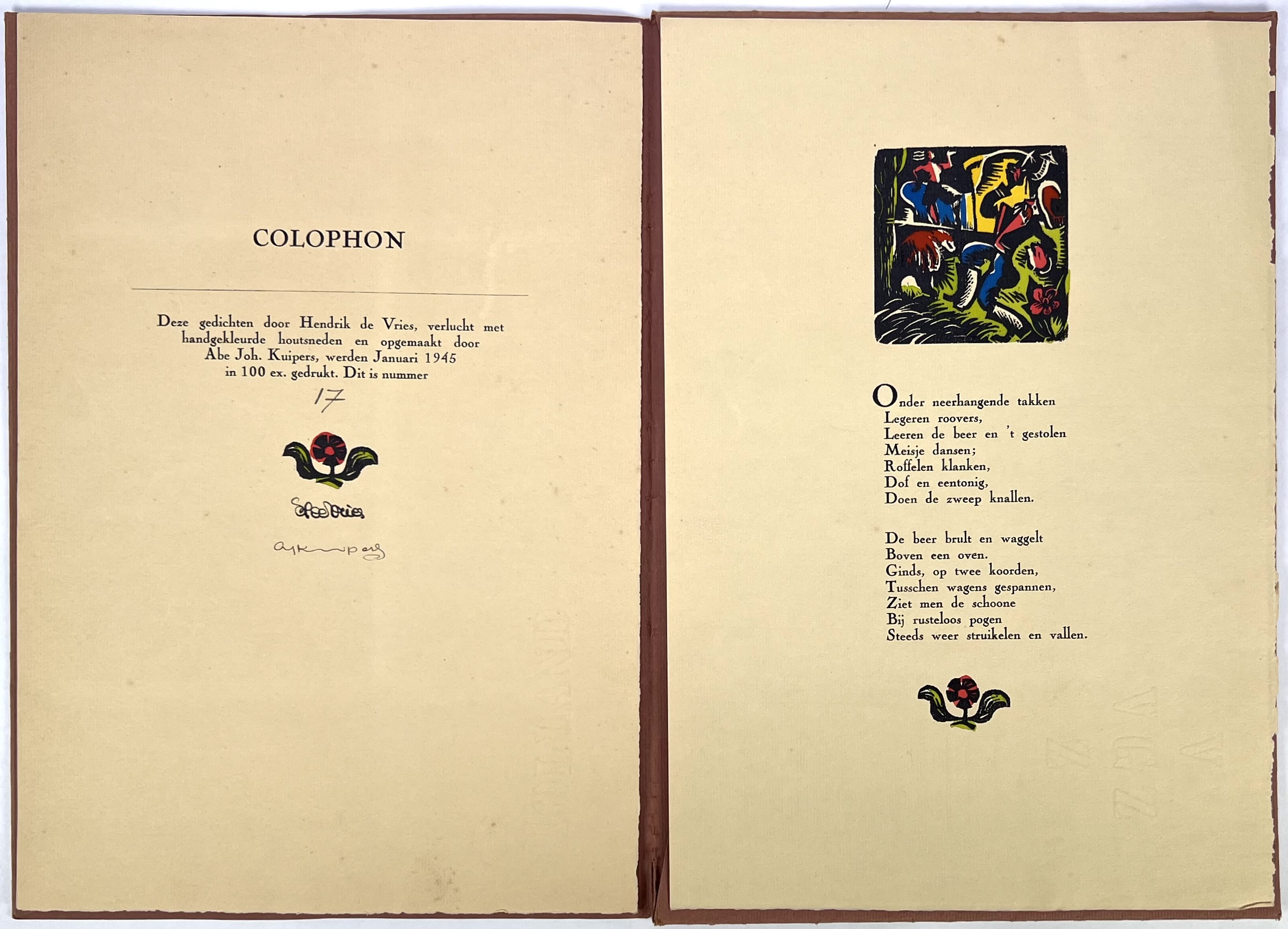 Houtsneden en gedichten Abe Kuipers en Hendrik de Vries, "Slingerpaden", 1945