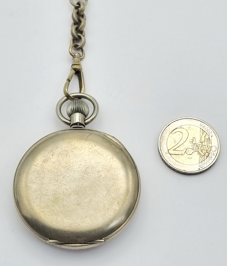 Een mechanische stopwatch van Alpina Glashütte Duitsland, daterend van circa 1920. Het object heeft een witte geëmailleerde wijzerplaat met een logo en een kleine wijzerplaat voor de minuten. Het uurwerk is zichtbaar onder een deksel en de stopwatch is bevestigd aan een metalen ketting. Klaar om te bieden? Registreer je nu en doe mee aan de veiling! |
