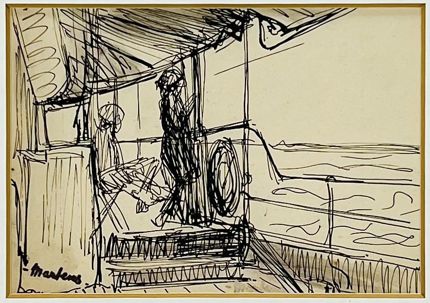 Inkttekening George Martens, scheepsdek, midden 20e eeuw