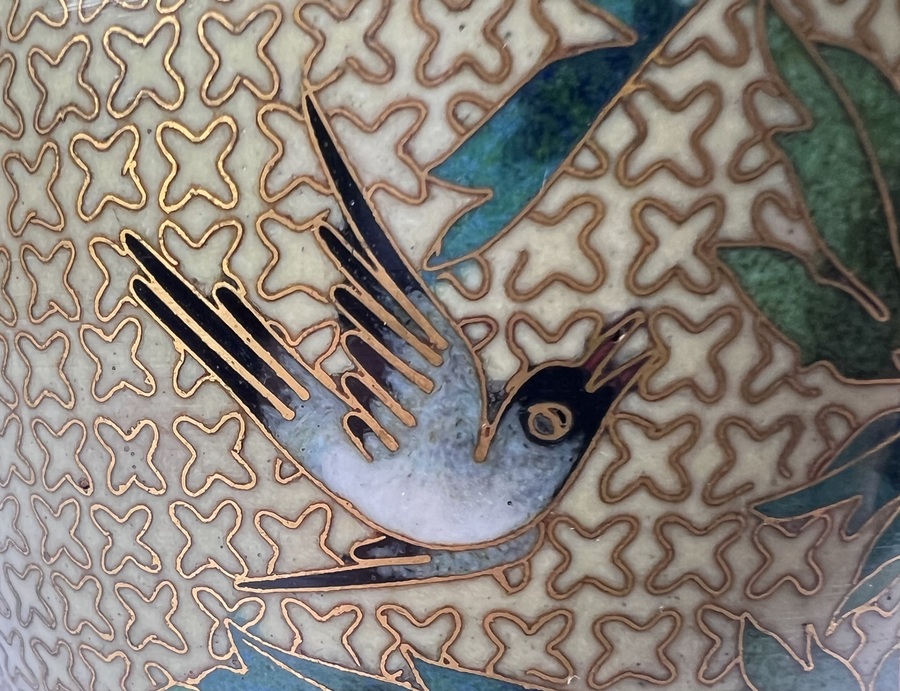 Coisonné vazen met pioen- en vogelmotief, ca. midden 20e eeuw, China