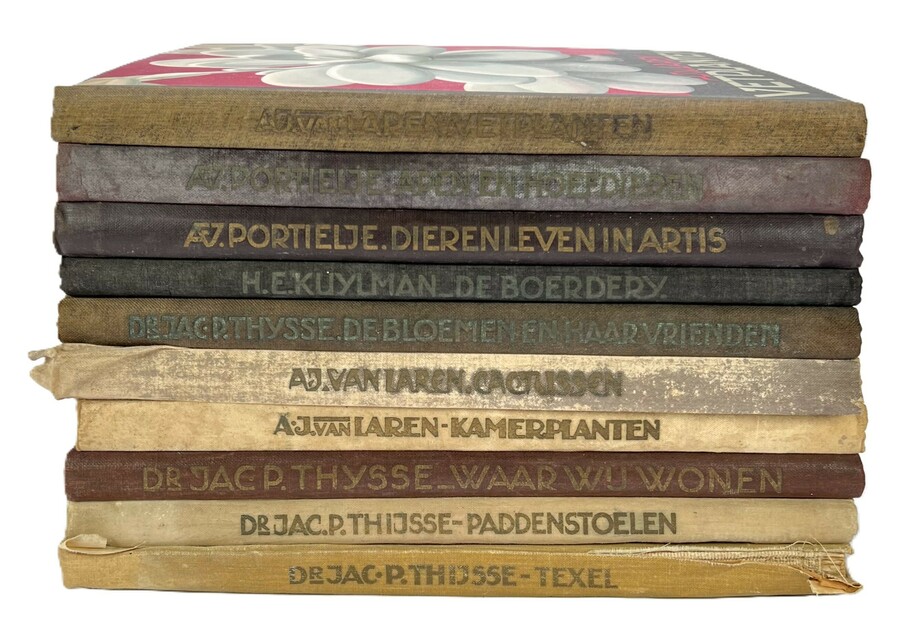 Collectie van tien plaatjesalbums, daterend circa 1920-1940, geschreven door auteurs Dr. Jac. P. Thijsse en A.F. Portielje, en behandelen onderwerpen als natuur en dieren. De harde kaften zijn van linnen, bedrukt met kleurrijke illustraties en titels. Een van de boeken is van uitgever A.J. van Laren.