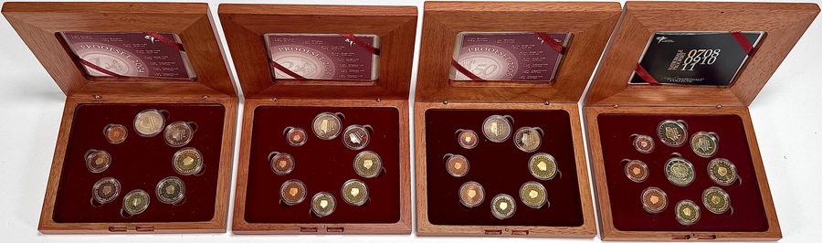 Set van vier proofsets met Nederlandse euromunten, uitgegeven door de Koninklijke Nederlandse Munt. De sets dateren uit de jaartallen 2004, 2005, 2006 en 2007. De munten zijn vervaardigd van diverse metalen en zijn geslagen met een proof afwerking. De sets worden gepresenteerd in houten kisten met een koninklijk wapen.