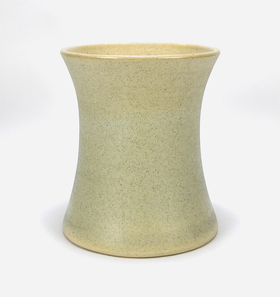 Vaas van de N.V. Groninger Steenfabrieken ADCO Aardewerk, Ruischerbrug. Uitgevoerd in steengoed met beige glazuur, in modernistische stijl met ingetogen vormgeving en licht uitlopende mond. Onderzijde gemerkt ADCO Holland en met handgeschreven notities verwijzend naar een huwelijksjubileum (60 jaar). De fabriek produceerde van circa 1920 tot 1977.