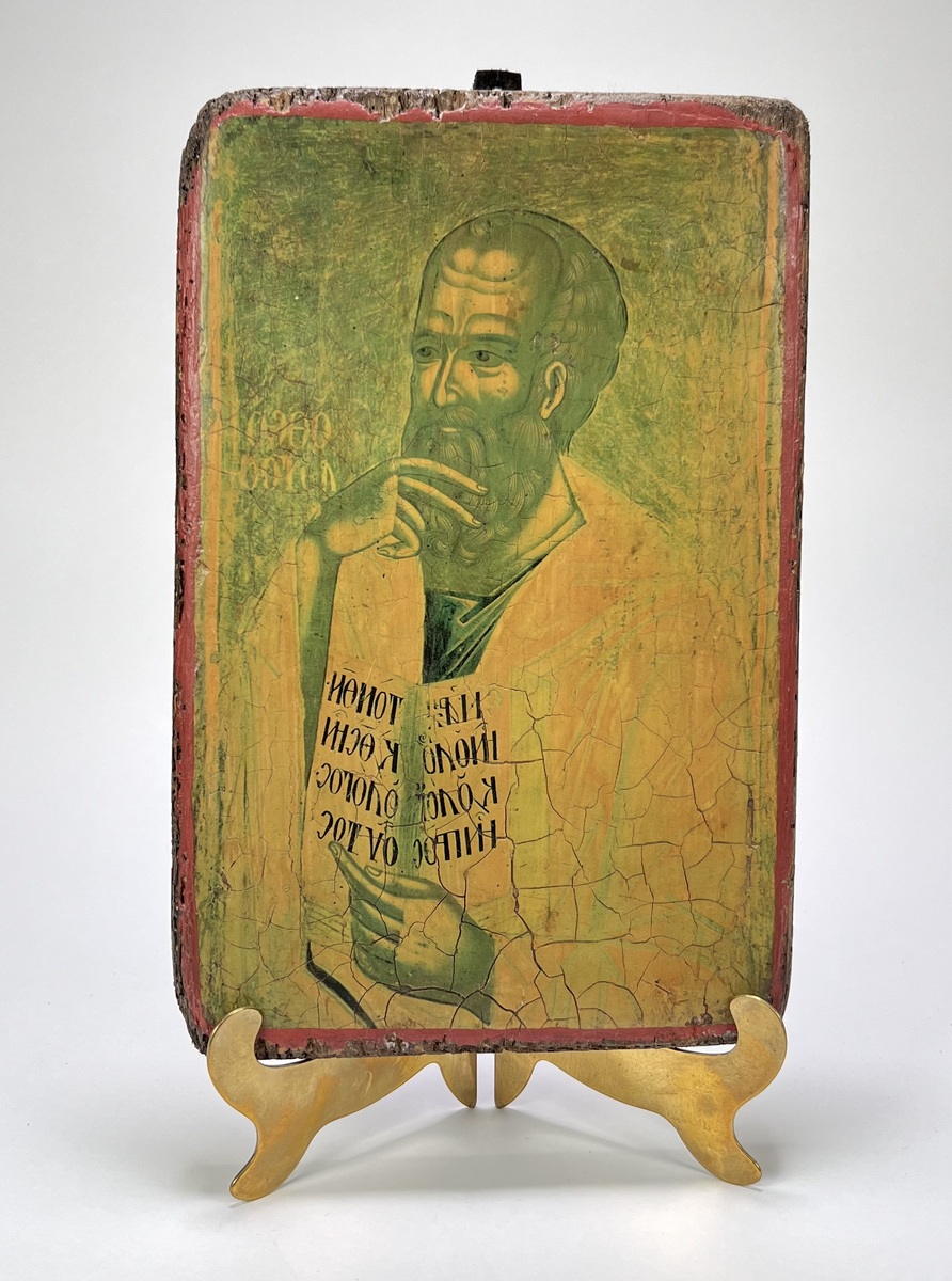 1177. Houten icoon, heilige met banderol, 19e eeuw, Rusland