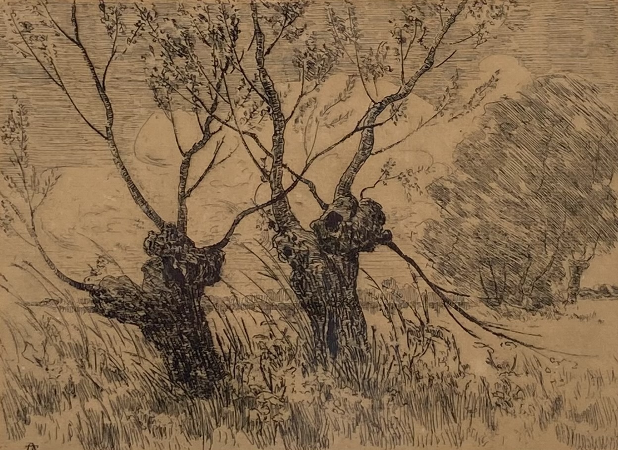 Ets op papier, Albert Torie, Knotwilgen, midden 20e eeuw